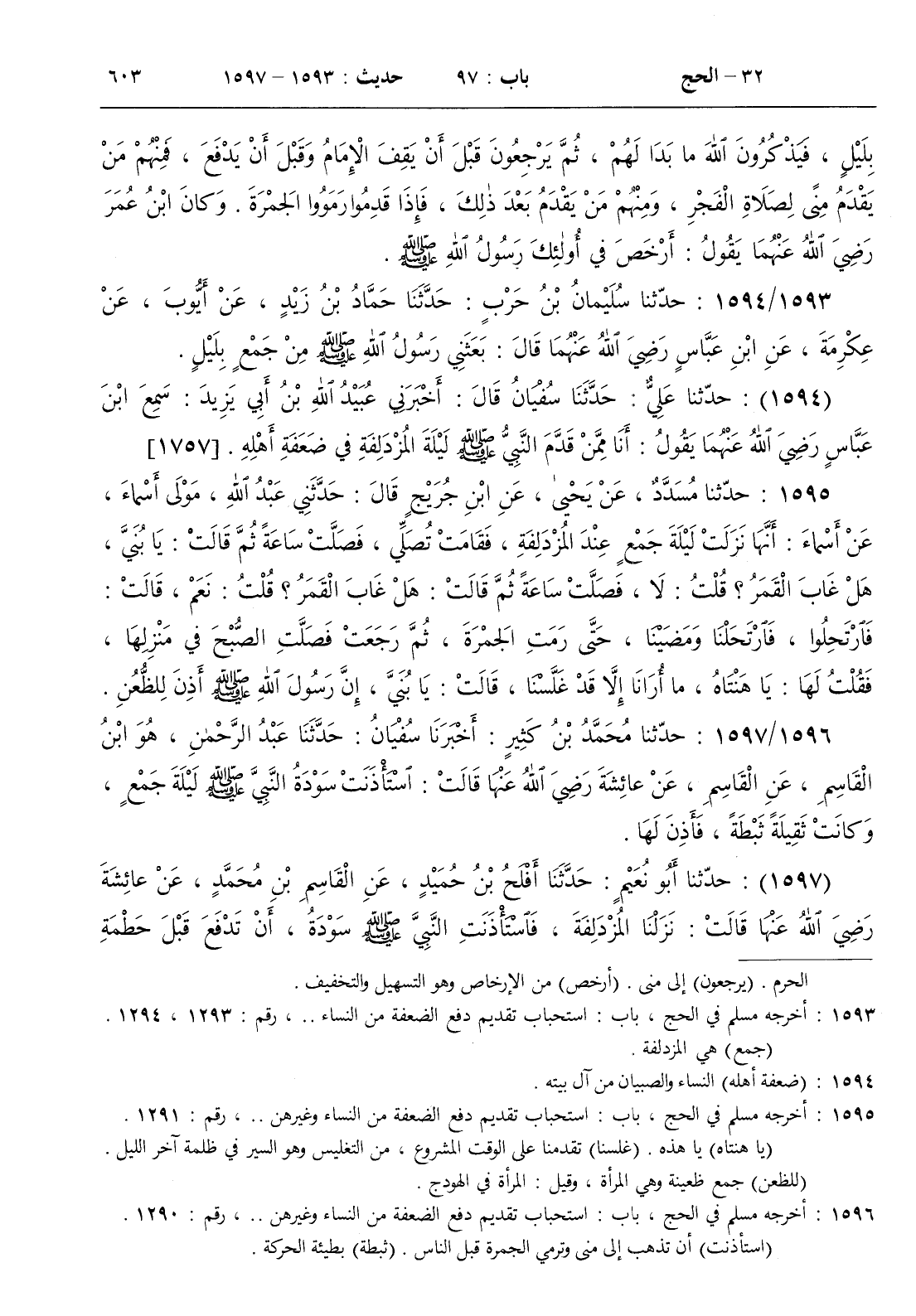 [ ش أخرجه مسلم في الحج باب استحباب تقديم دفع الضعفة من النساء . . رقم 1293 ، 1294