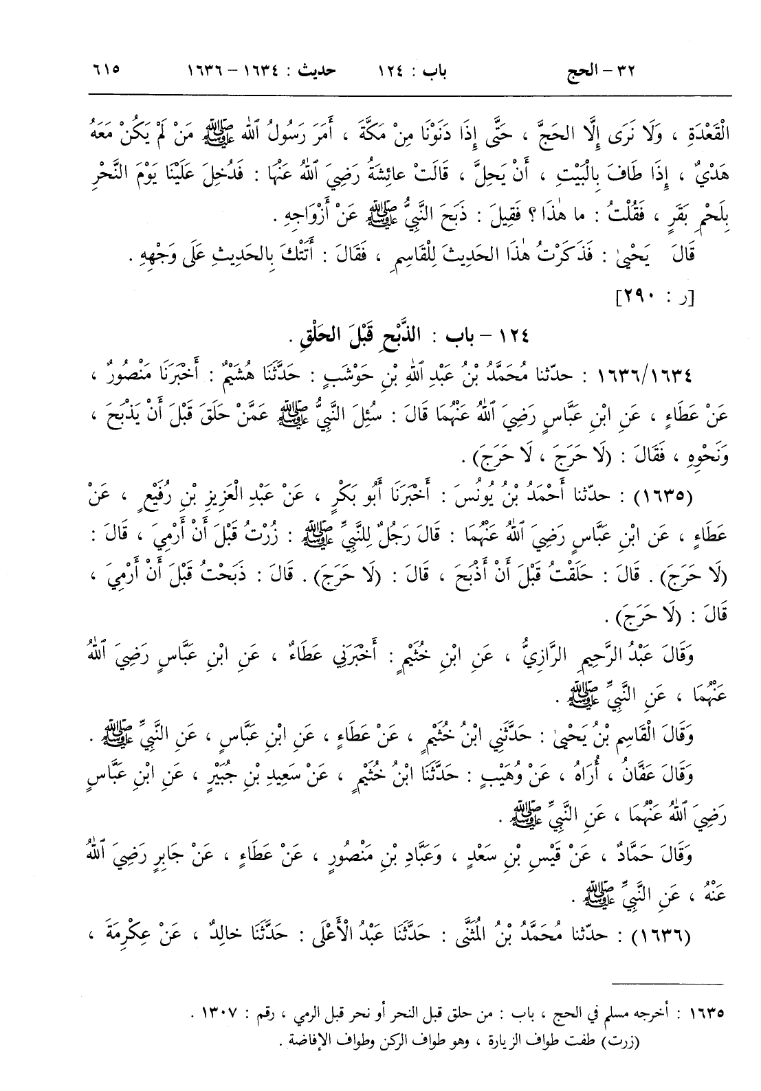1634 - حدثنا محمد بن عبد الله بن حوشب حدثنا هشيم أخبرنا منصور عن عطاء عن ابن عباس رضي الله عنهما قال