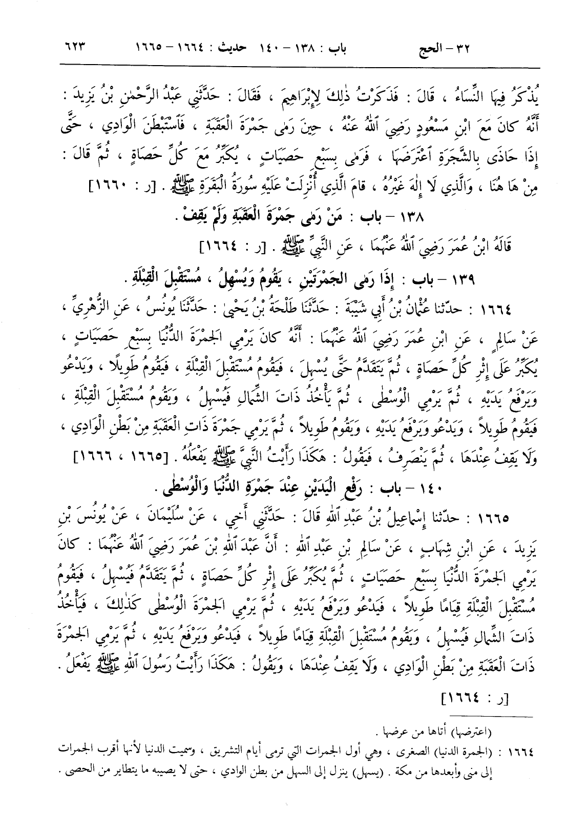 140 - باب رفع اليدين عند جمرة الدنيا والوسطى