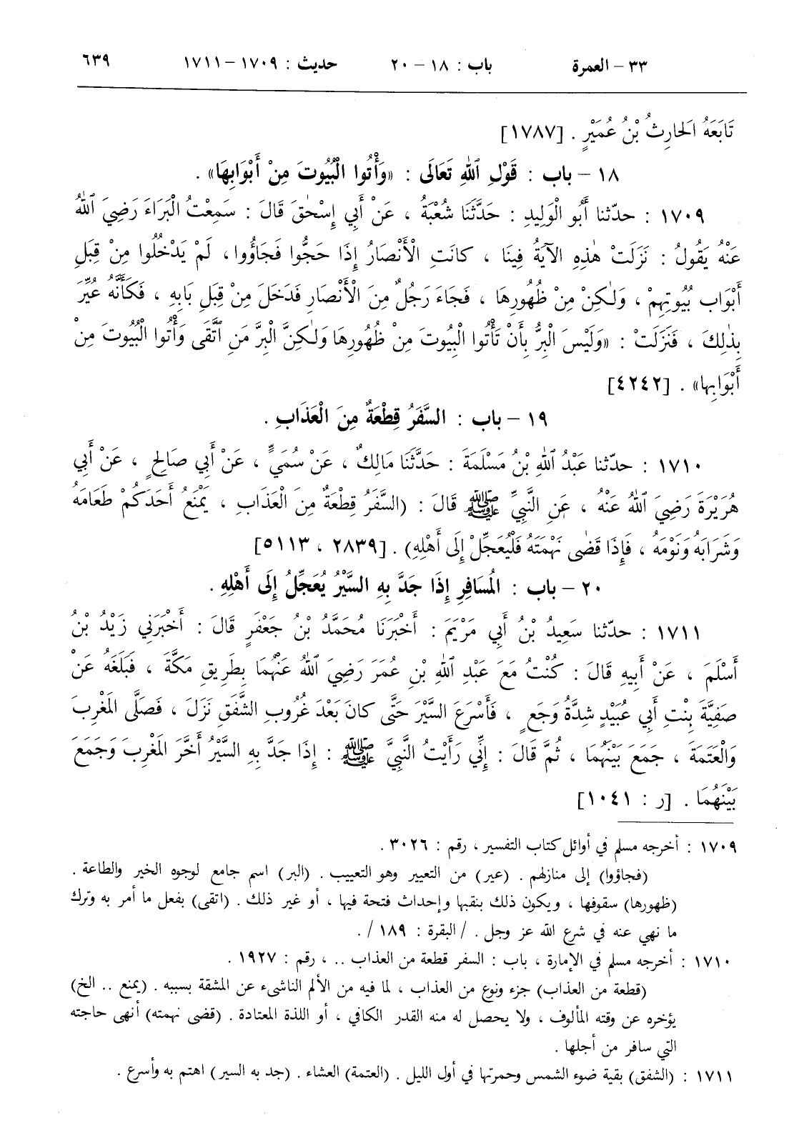 : سمعت البراء رضي الله عنه يقول نزلت هذه الآية فينا كانت الأنصار إذا حجوا فجاؤوا لم يدخلوا من قبل أبواب بيوتهم ولكن من ظهورها فجاء رجل من الأنصار فدخل من قبل بابه فكأنه عير بذلك فنزلت { وليس البر بأن تأتوا البيوت من ظهورها ولكن البر من اتقى وأتوا البيوت من أبوابها }
