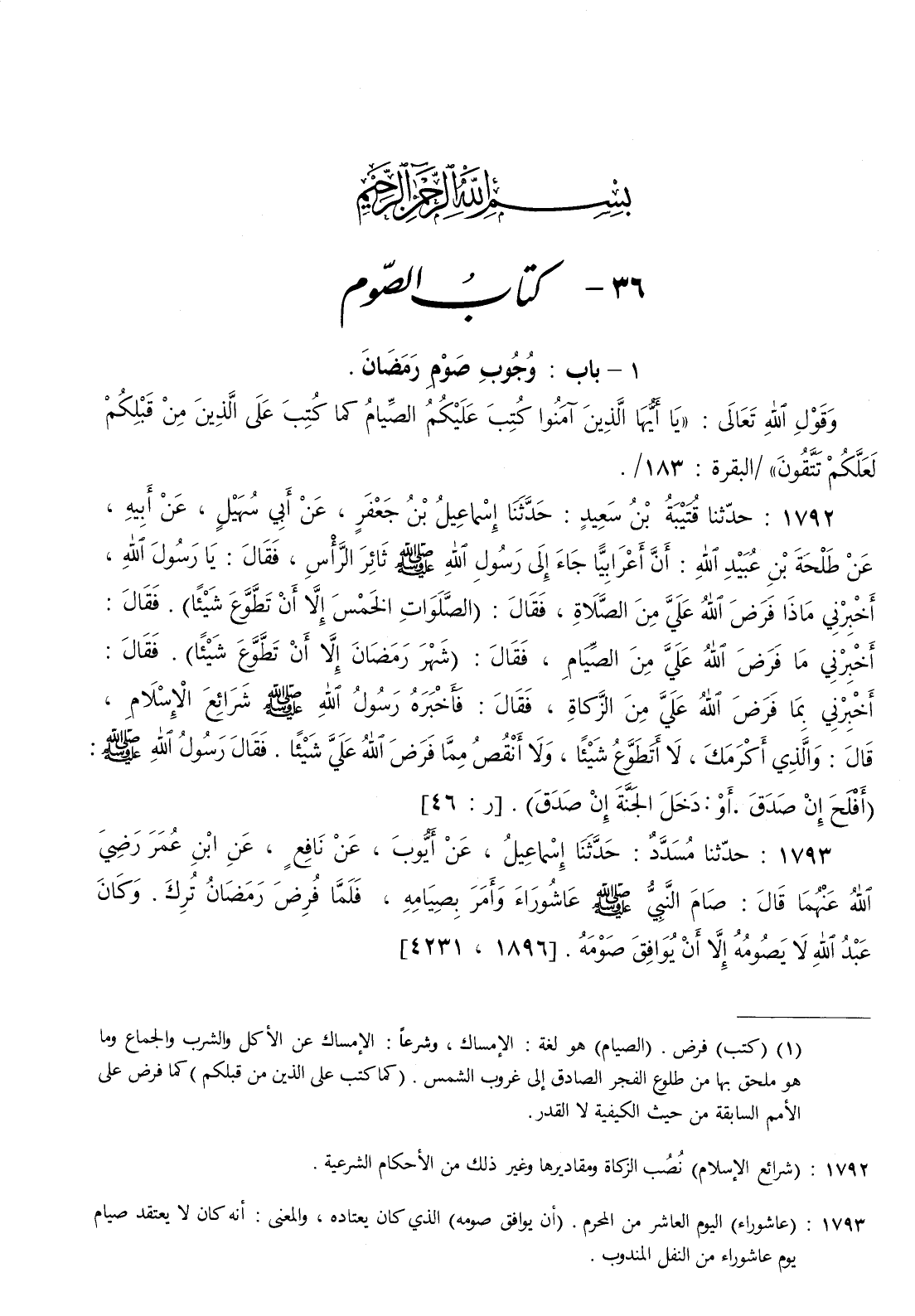 1793 - حدثنا مسدد حدثنا إسماعيل عن أيوب عن نافع عن ابن عمر رضي الله عنهما قال