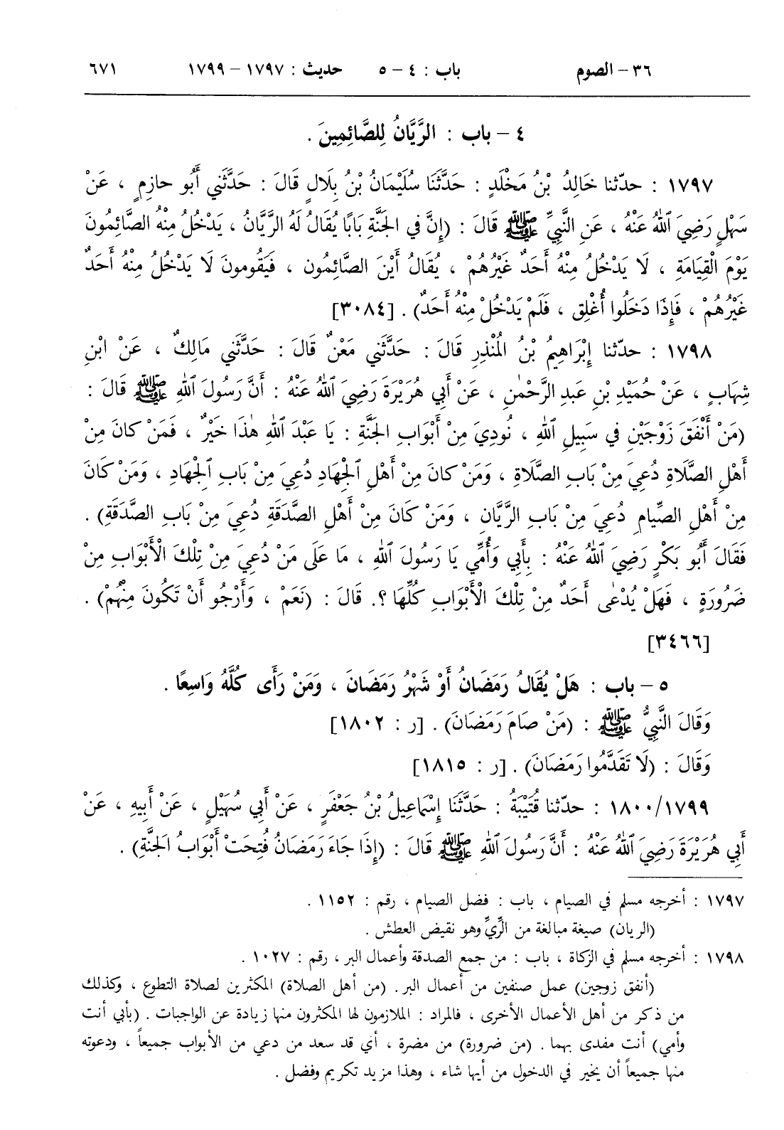 : عن النبي صلى الله عليه و سلم قال ( إن في الجنة بابا يقال له الريان يدخل منه الصائمون يوم القيامة لا يدخل منه أحد غيرهم يقال أين الصائمون فيقومون لا يدخل منه أحد غيرهم فإذا دخلوا أغلق فلن يدخل منه أحد )