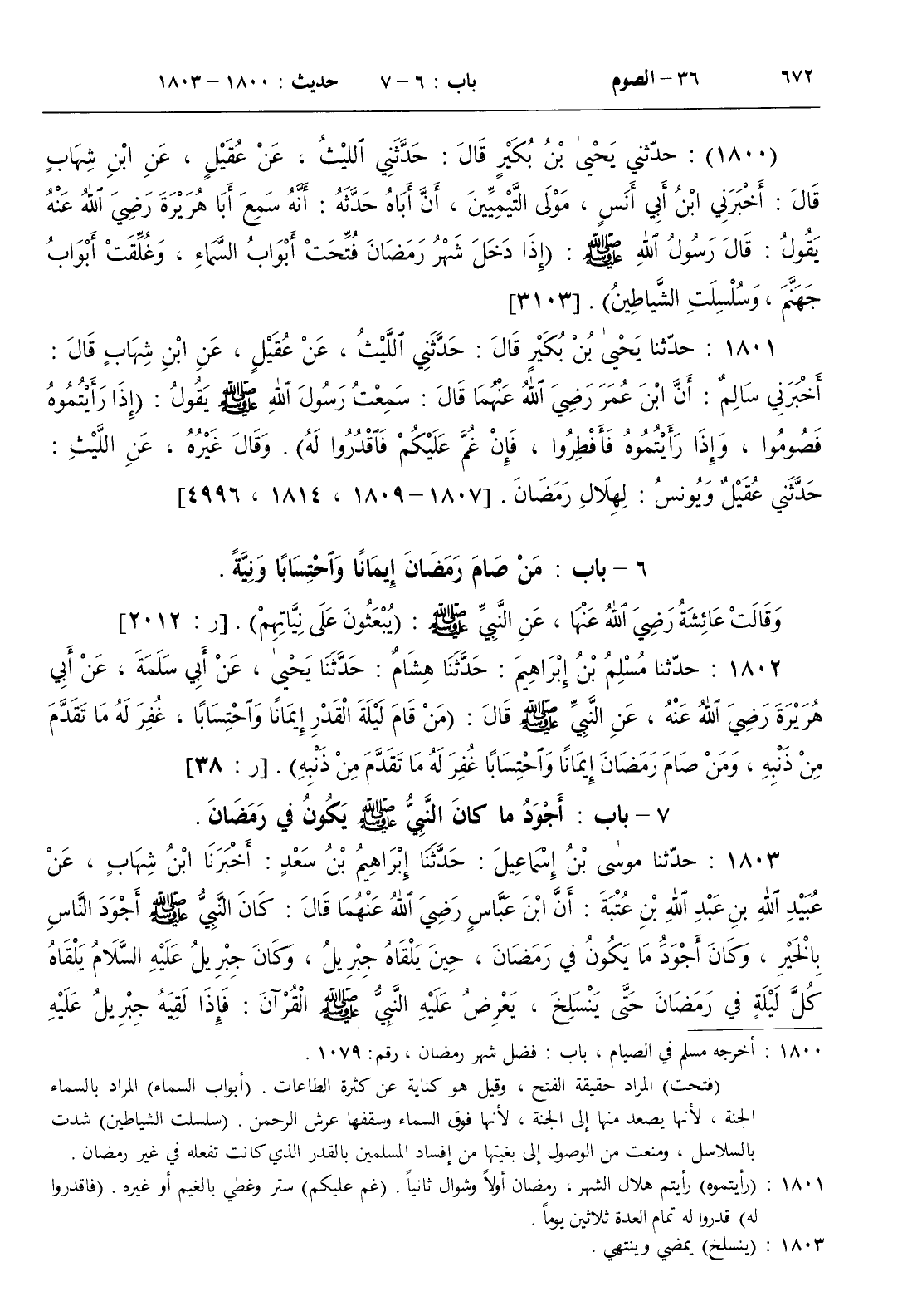 6 - باب من صام رمضان إيمانا واحتسابا ونية