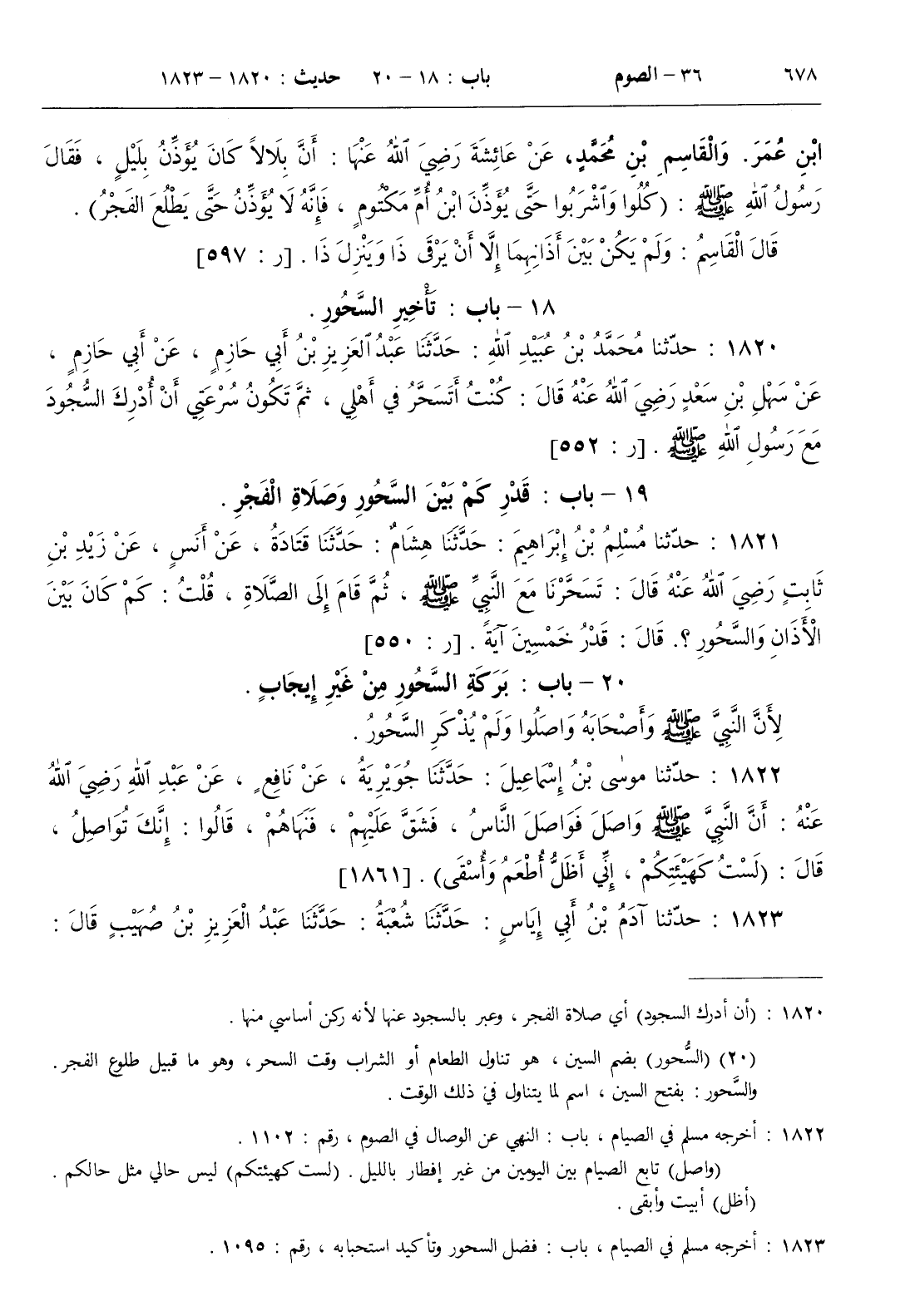 19 - باب قدر كم بين السحور وصلاة الفجر