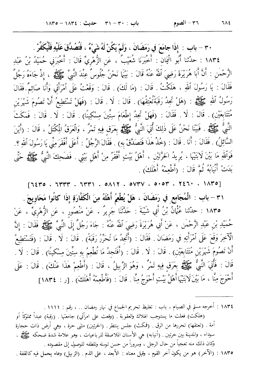 [ ش أخرجه مسلم في الصيام باب تغليظ تحريم الجماع في نهار رمضان . . رقم 1111