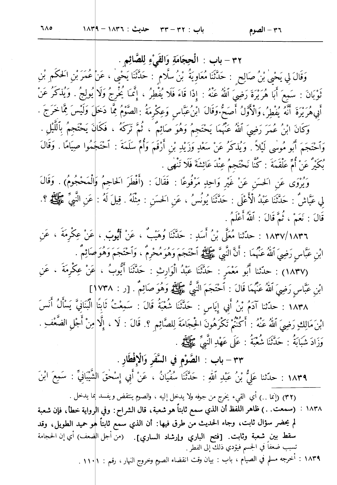 : سمعت ثابتا البناني يسأل أنس بن مالك رضي الله عنه أكنتم تكرهون الحجامة للصائم ؟ . قال لا إلا من أجل الضعف . وزاد شبابة حدثنا شعبة على عهد النبي صلى الله عليه و سلم
