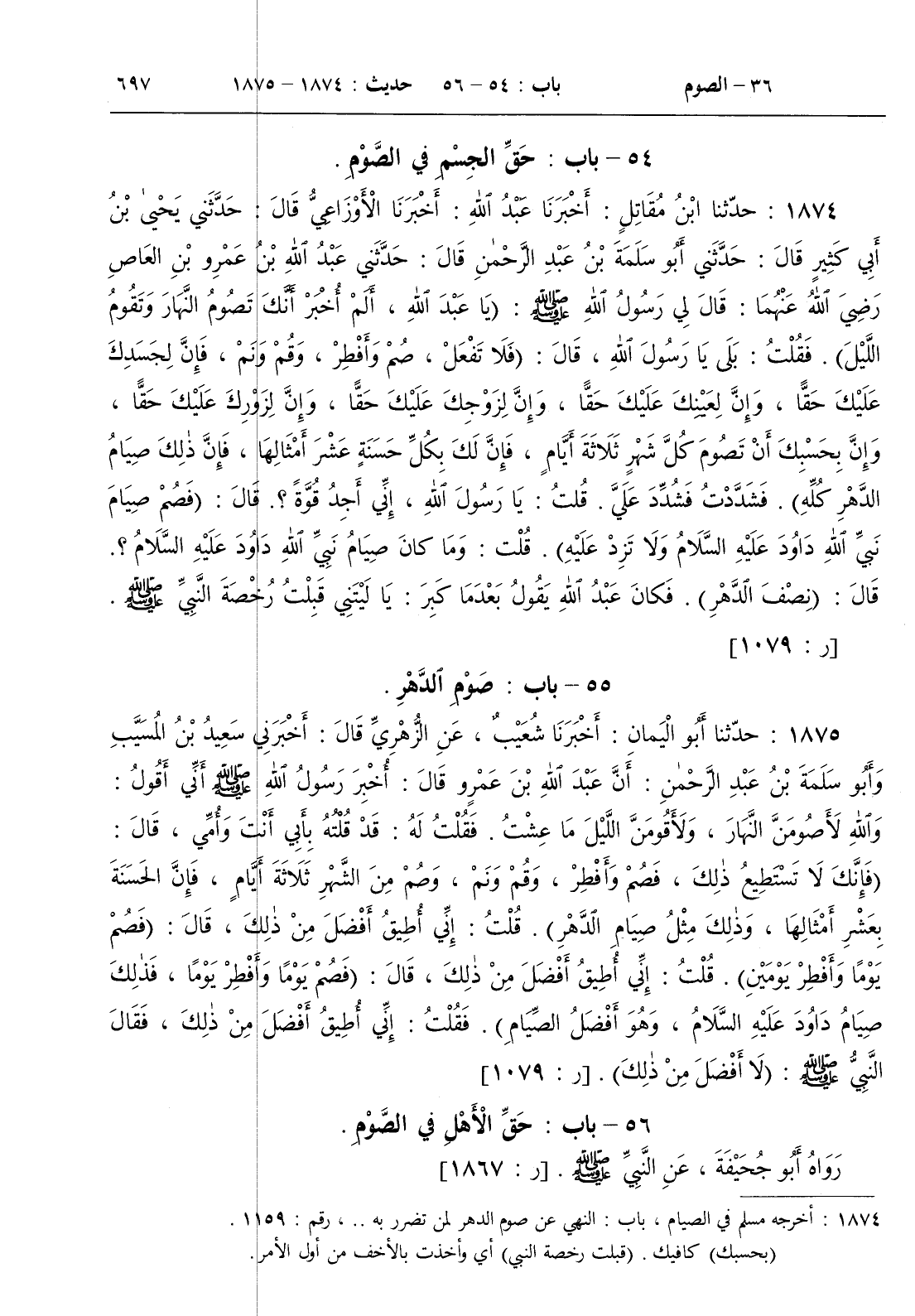 56 - باب حق الأهل في الصوم