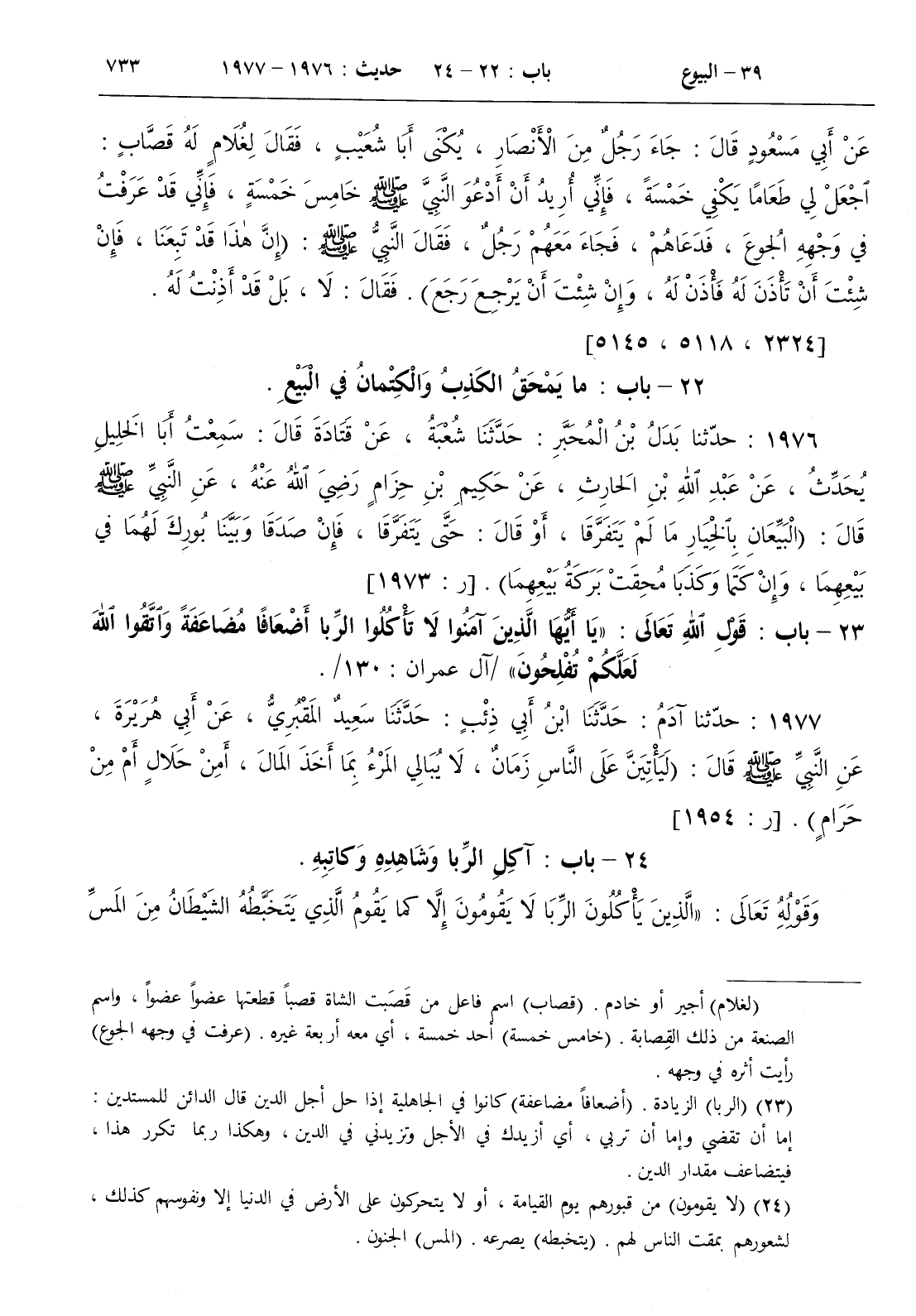 23 - باب قول الله تعالى { يا أيها الذين آمنوا لا تأكلوا الربا أضعافا مضاعفة واتقوا الله لعلكم تفلحون } / آل عمران 130 /
