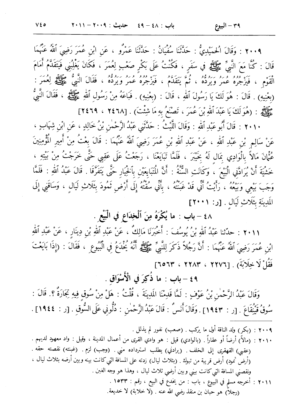 2011 - حدثنا عبد الله بن يوسف أخبرنا مالك عن عبد الله بن دينار عن عبد الله بن عمر رضي الله عنهما
