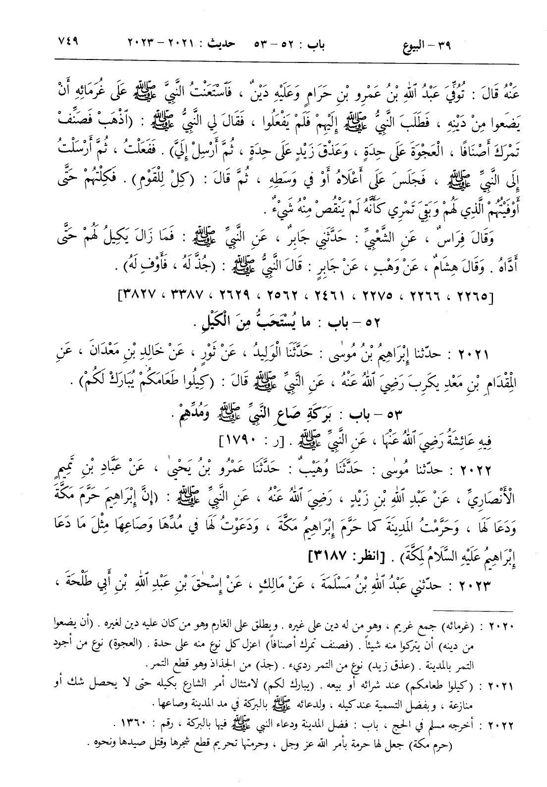 53 - باب بركة صاع النبي صلى الله عليه و سلم ومدهم