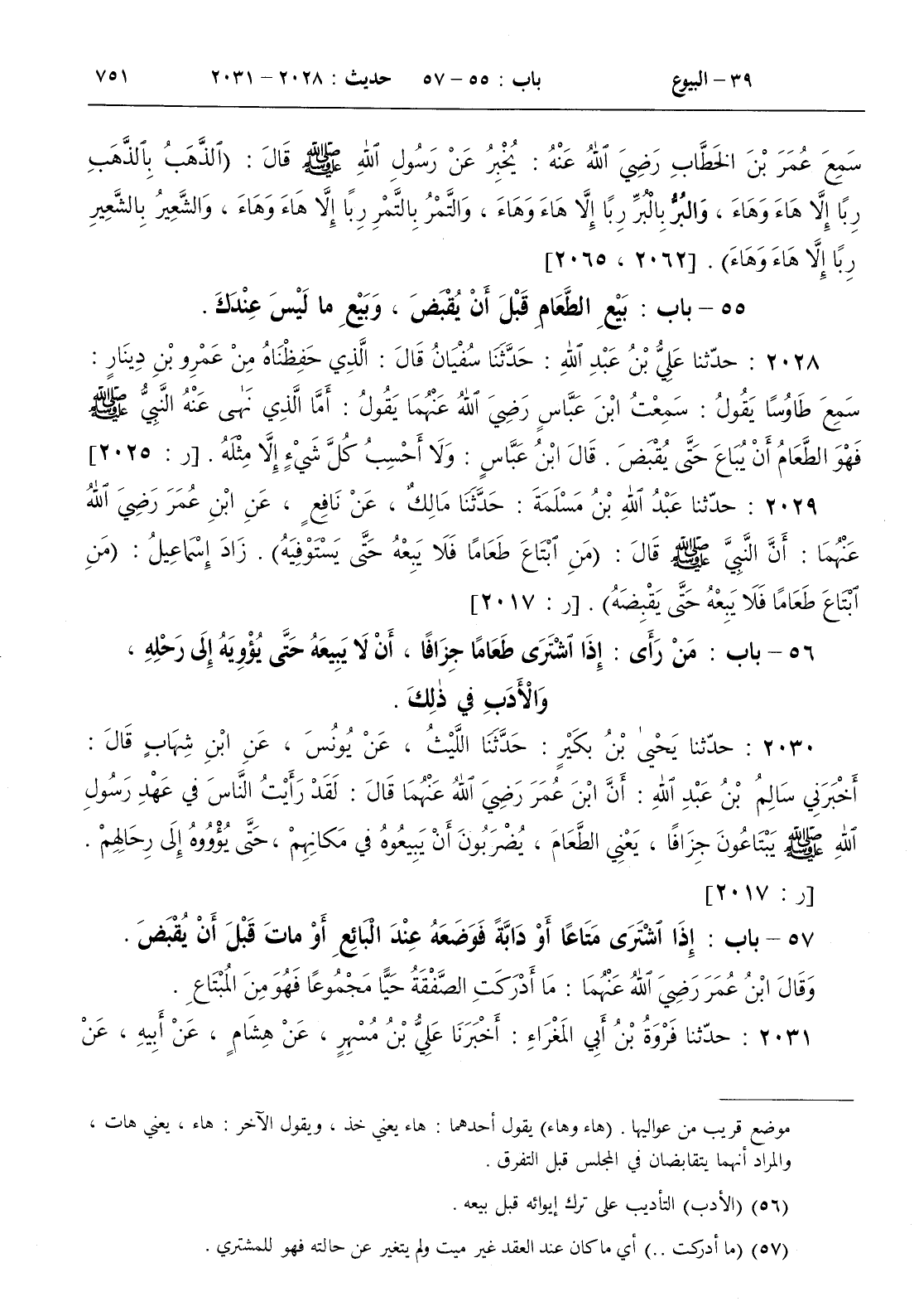 56 - باب من رأى إذا اشترى طعاما جزافا أن لا يبيعه حتى يؤويه إلى رحله والأدب في ذلك