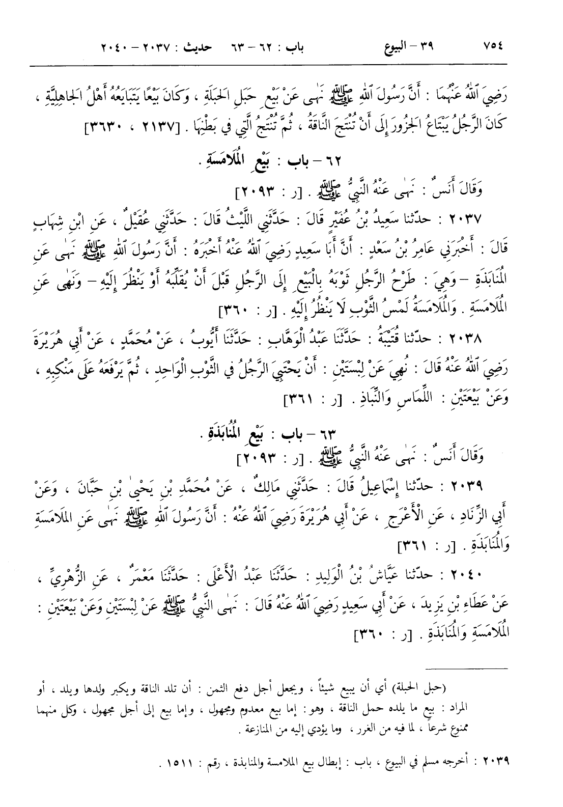 : أن رسول الله صلى الله عليه و سلم نهى عن الملامسة والمنابذة