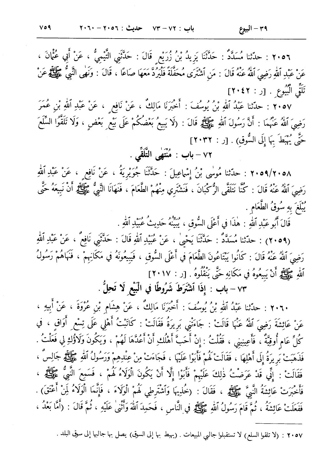 73 - باب إذا اشترط شروطا في البيع لا تحل