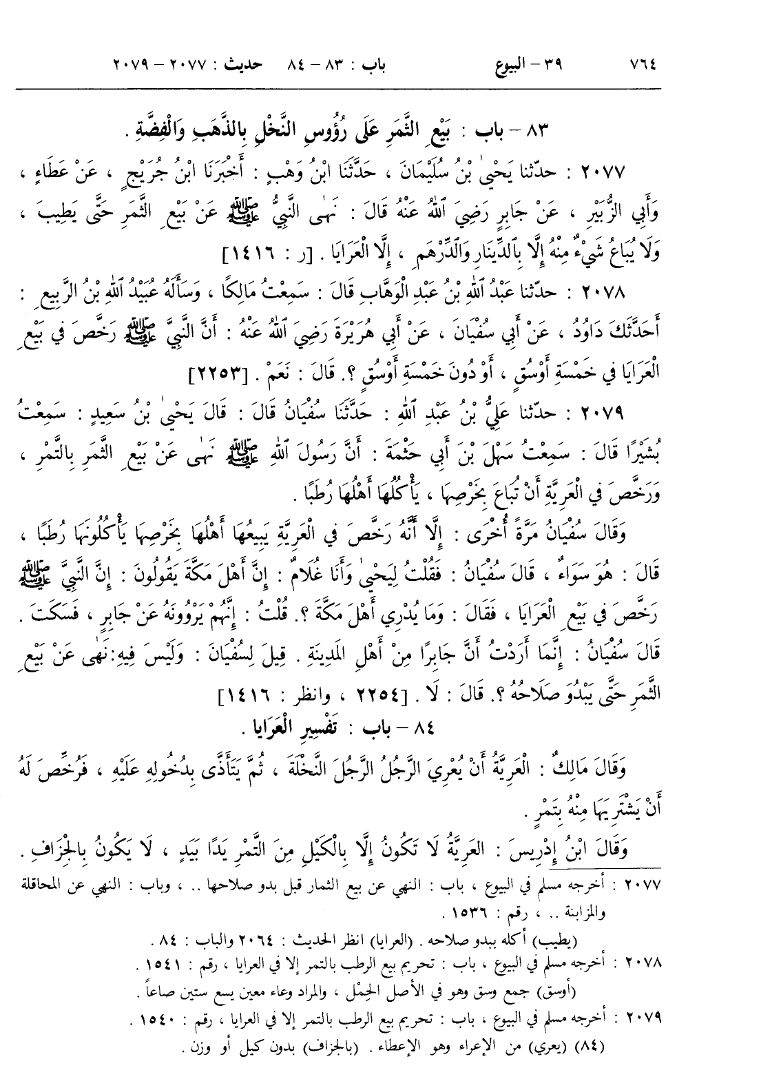 [ ش أخرجه مسلم في البيوع باب تحريم بيع الرطب بالتمر إلا في العرايا رقم 1541
