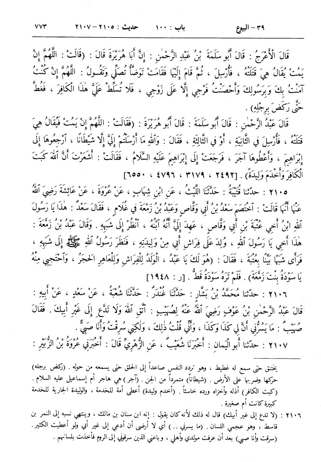 [ ش ( لا تدع إلى غير أبيك ) قال له ذلك لأنه كان يقول إنه ابن سنان بن مالك وينتهي نسبه إلى النمر بن قاسط وهو عجمي اللسان . ( ما يسرني . . ) أي لا أرضى أن أدعي إلى غير أبي ولو أعطيت الكثير . ( سرقت وأنا صبي ) بعد أن عرفت مولدي وأهلي وباعني الذين سرقوني إلى الروم فأخذت بسانهم ]