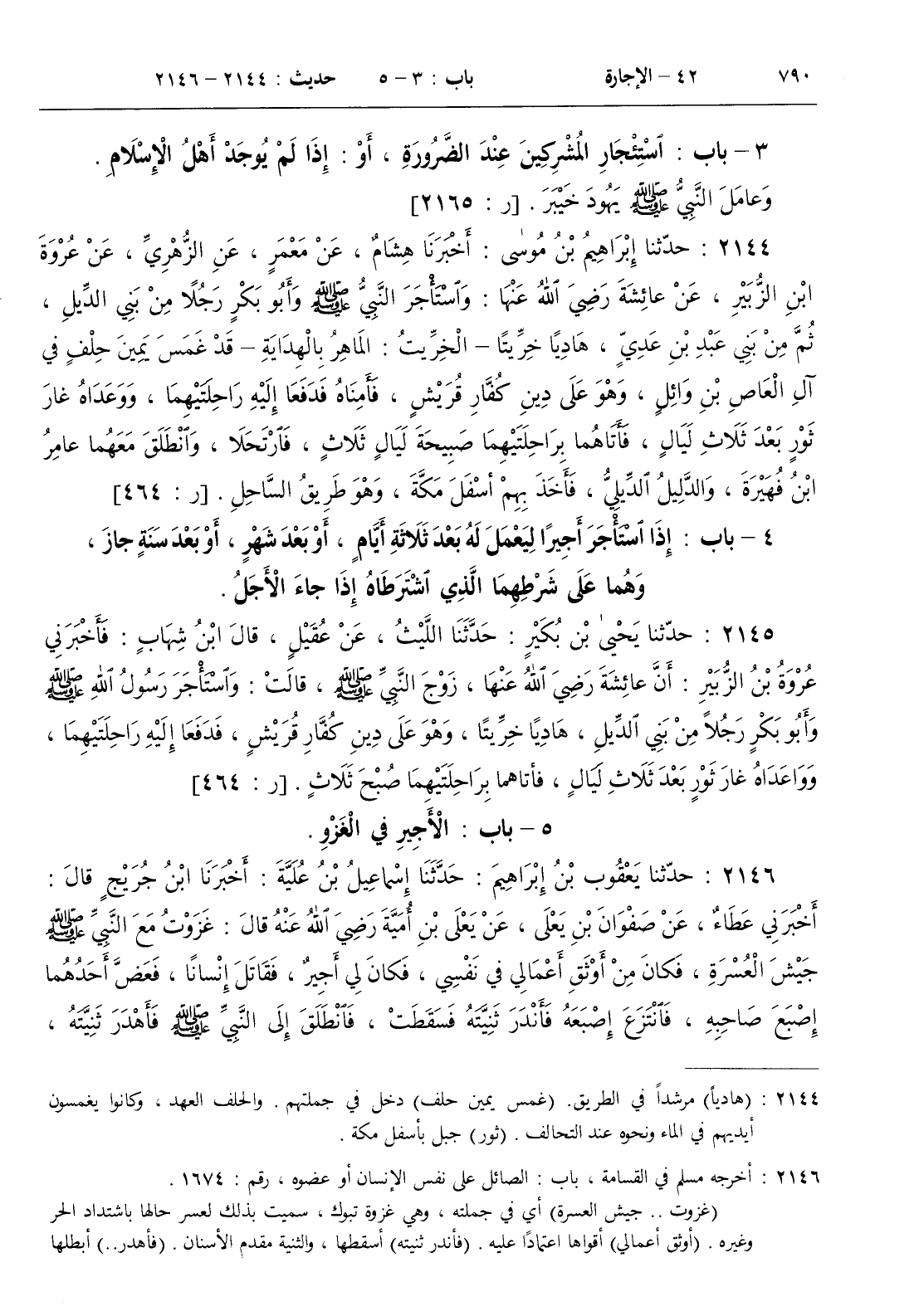 : واستأجر رسول الله صلى الله عليه و سلم وأبو بكر رجلا من بني الديل هاديا خريتا وهو على دين كفار قريش فدفعا إليه راحلتيهما وواعداه غار ثور بعد ثلاث ليال فأتاهما براحلتيهما صبح ثلاث