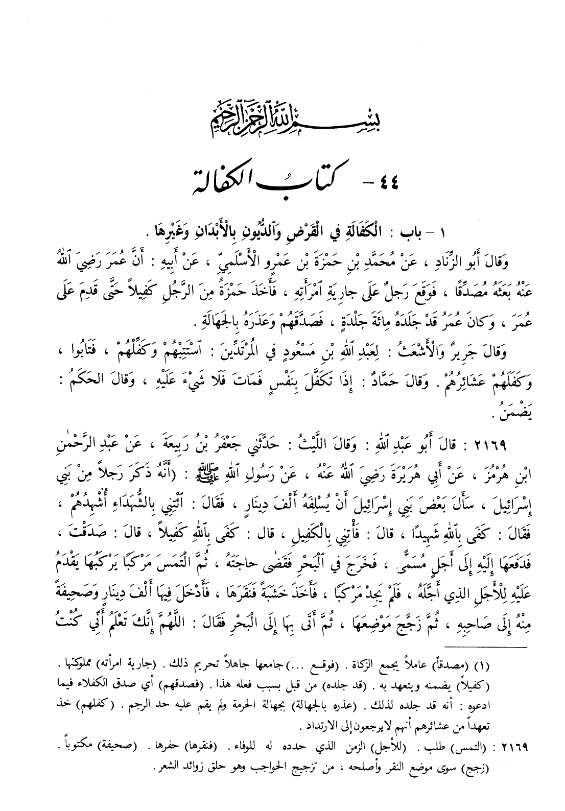 : عن رسول الله صلى الله عليه و سلم ( أنه ذكر رجلا من بني إسرائيل سأل بعضهم بني إسرائيل أن يسلفه ألف دينار فقال ائتني بالشهداء أشهدهم فقال كفى بالله شهيدا قال فأئتني بالكفيل قال كفى بالله كفيلا قال صدقت فدفعها إليه إلى أجل مسمى فخرج في البحر فقضى حاجته