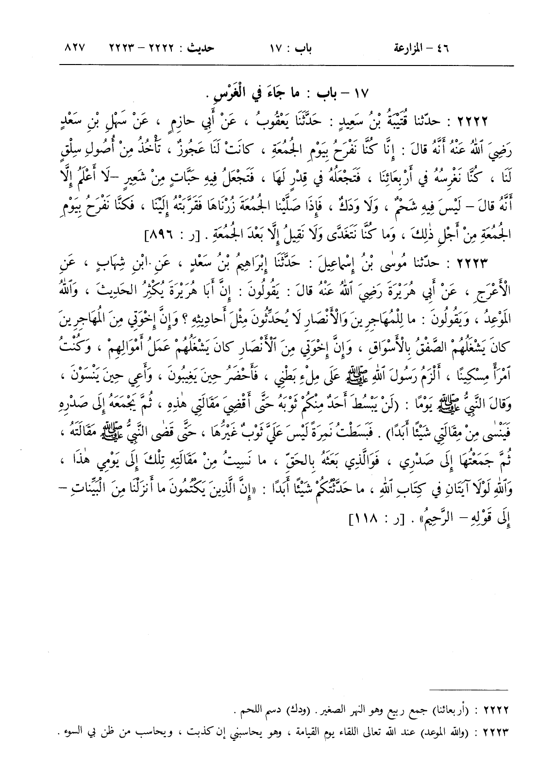 2222 - حدثنا قتيبة بن سعيد حدثنا يعقوب عن أبي حازم عن سهل بن سعد رضي الله عنه أنه قال