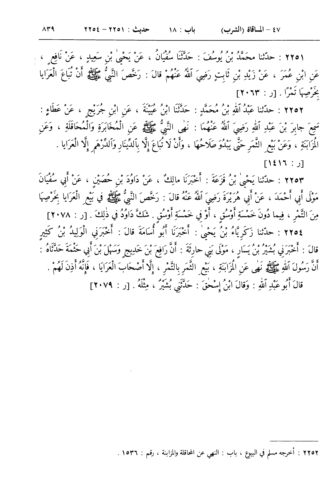 2253 - حدثنا يحيى بن قزعة أخبرنا مالك عن داود بن حصين عن أبي سفيان مولى أبي أحمد عن أبي هريرة رضي الله عنه قال
