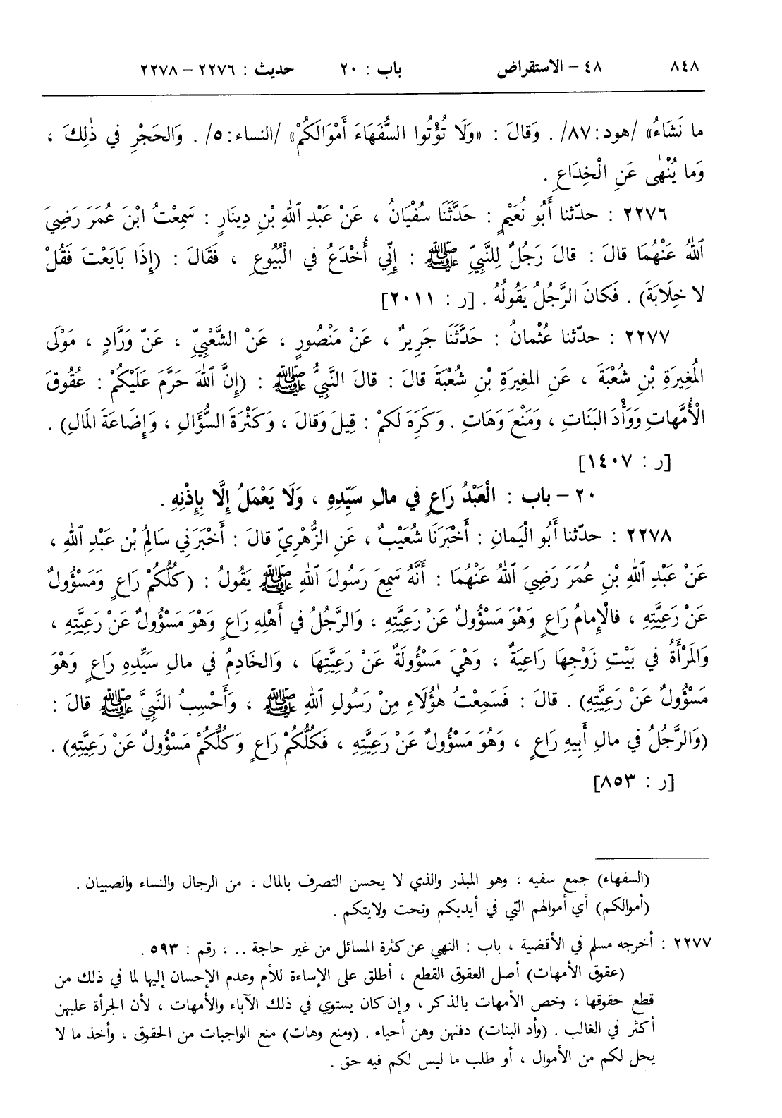 20 - باب العبد راع في مال سيده ولا يعمل إلا بإذنه