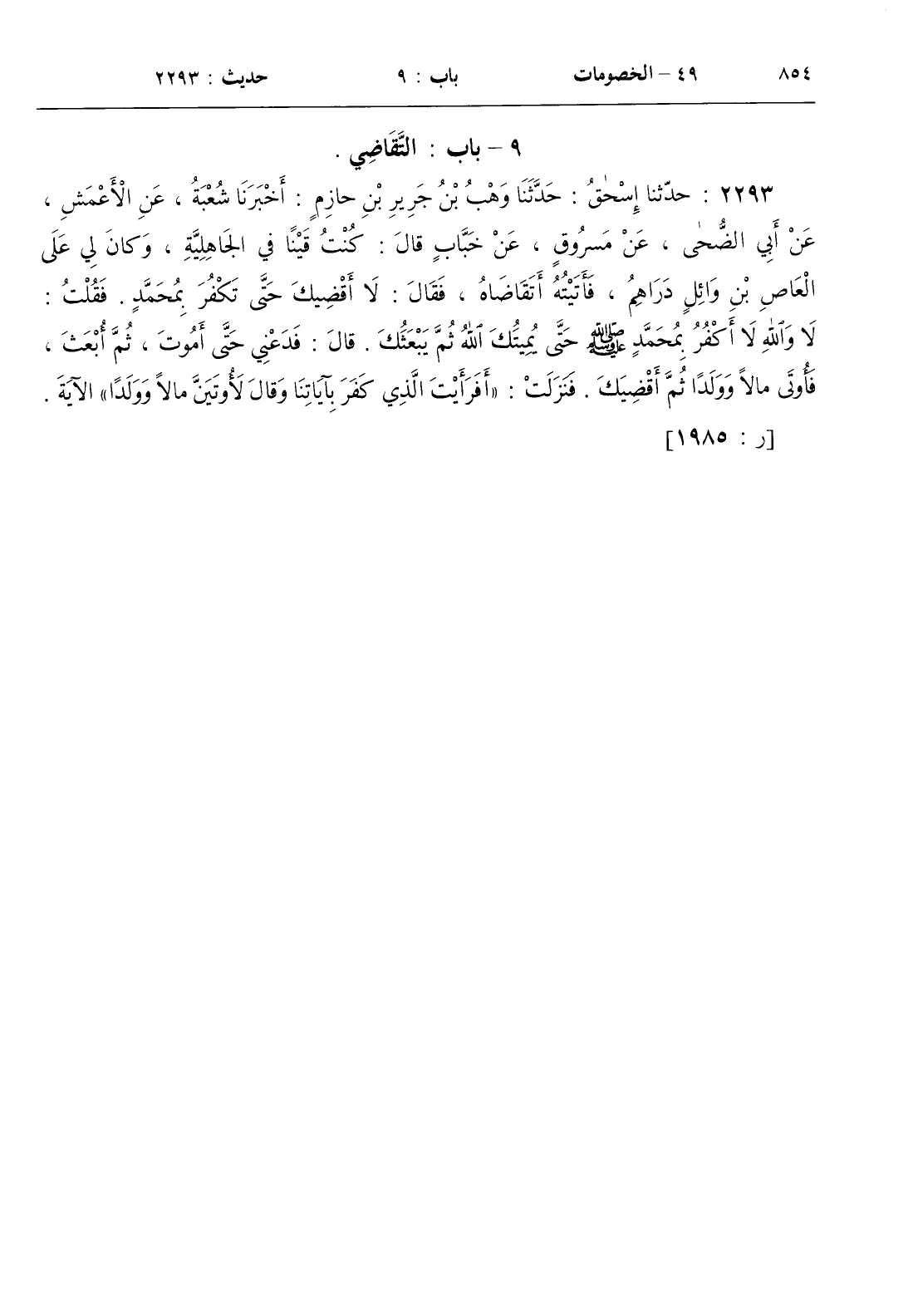 2293 - حدثنا إسحاق حدثنا وهب بن جرير بن حازم أخبرنا شعبة عن الأعمش عن أبي الضحى عن مسروق عن خباب قال