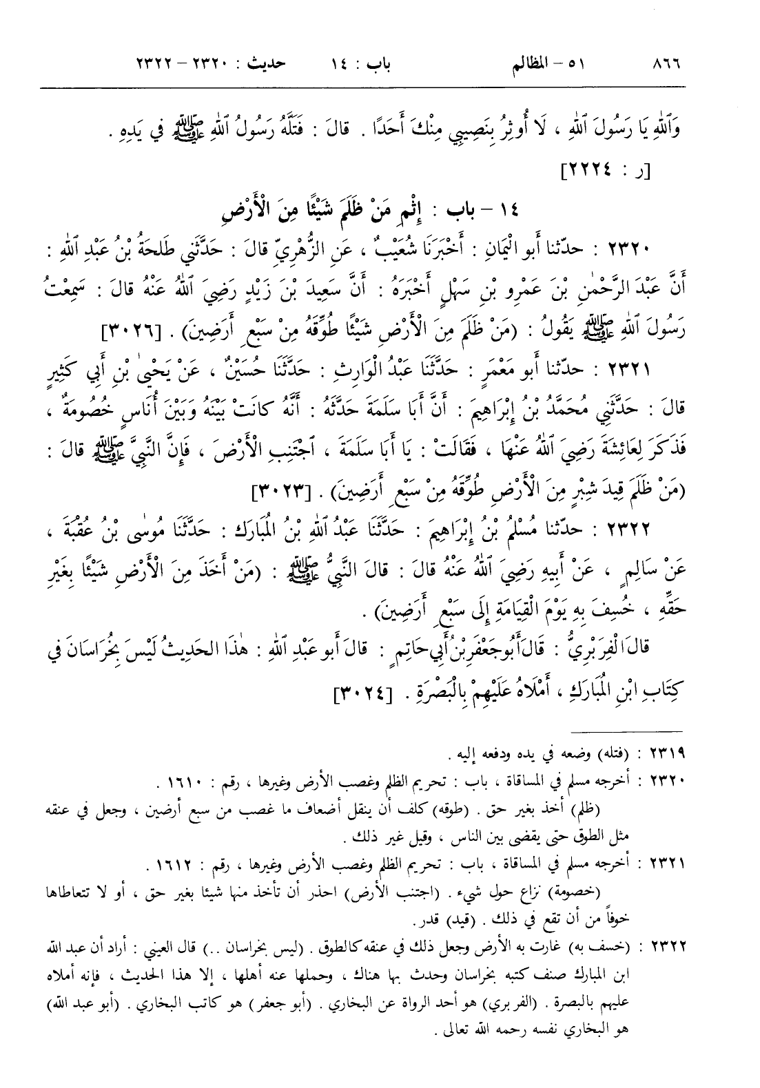 [ ش ( خسف به ) غارت به الأرض وجعل ذلك في عنقه كالطوق . ( ليس بخراسان . . ) قال العيني أراد أن عبد الله بن المبارك صنف كتبه بخراسان وحدث بها هناك وحملها عنه أهلها إلا أن هذا الحديث فإنه أملاه عليهم بالبصرة . ( الفربري ) هو أحد الرواة عن البخاري . ( أبو جعفر ) هو كاتب البخاري . ( أبو عبد الله ) هو البخاري نفسه رحمه الله تعالى ]