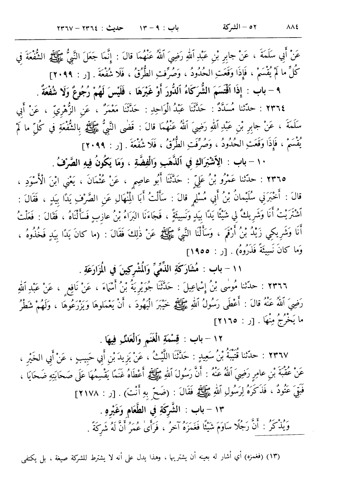 13 - باب الشركة في الطعام وغيره
