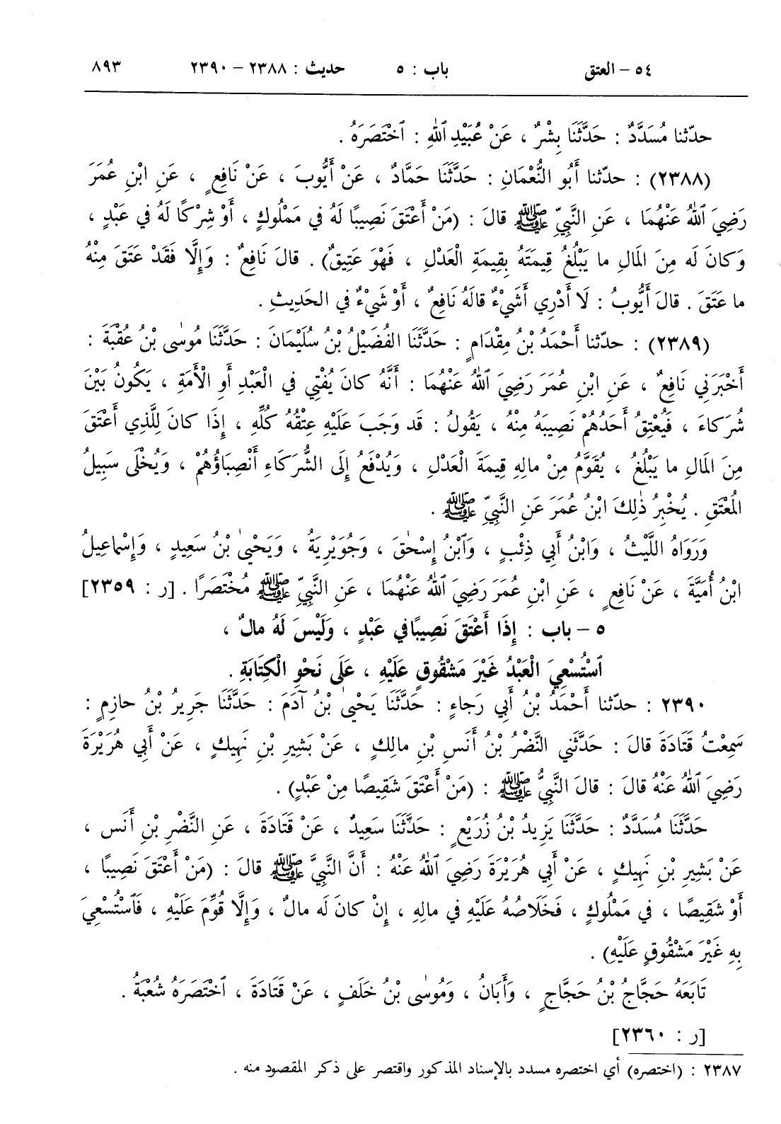 2388 - حدثنا أبو النعمان حدثنا حماد عن أيوب عن نافع عن ابن عمر رضي الله عنهما