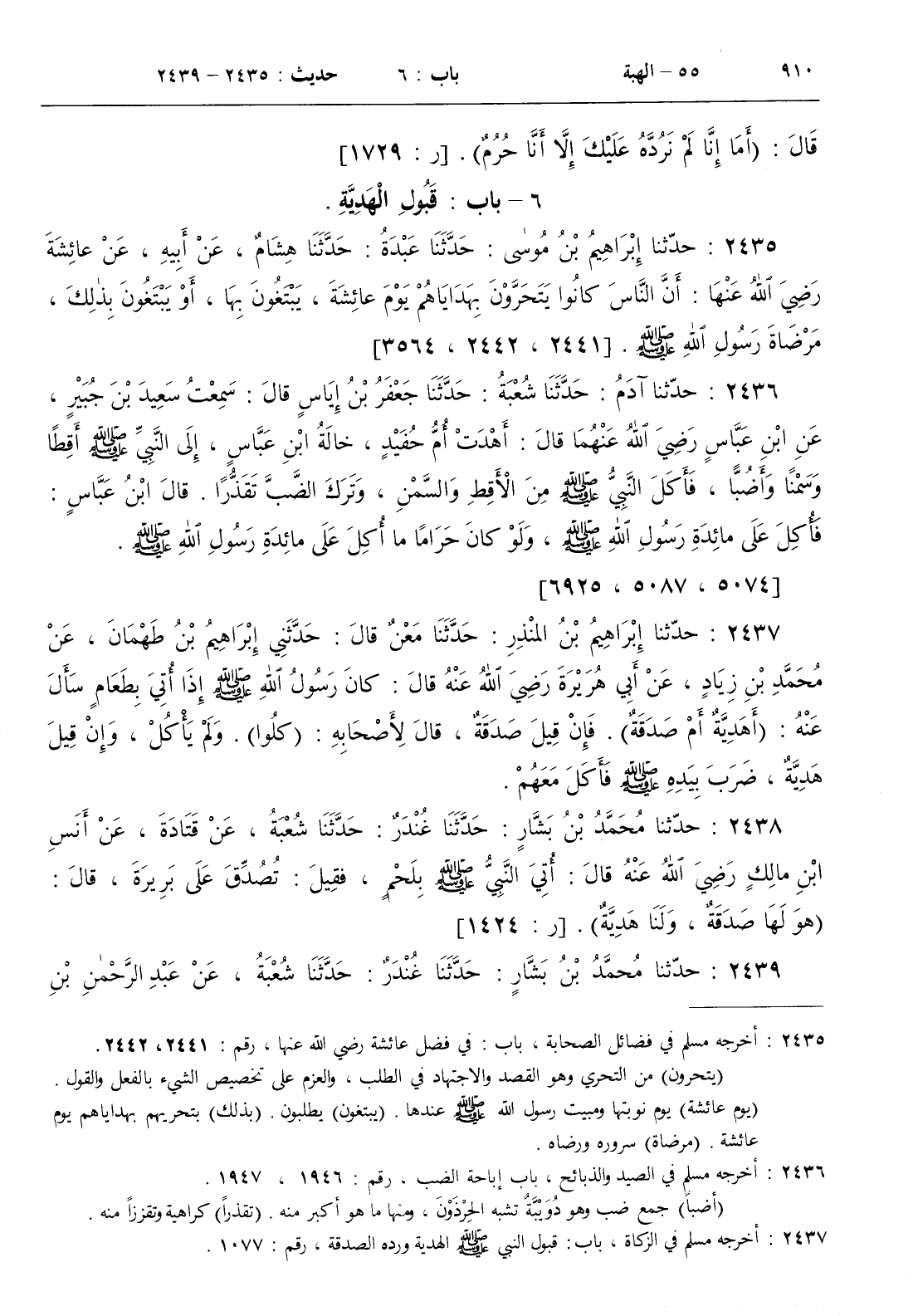 2435 - حدثنا إبراهيم بن موسى حدثنا عبدة حدثنا هشام عن أبيه عن عائشة رضي الله عنها