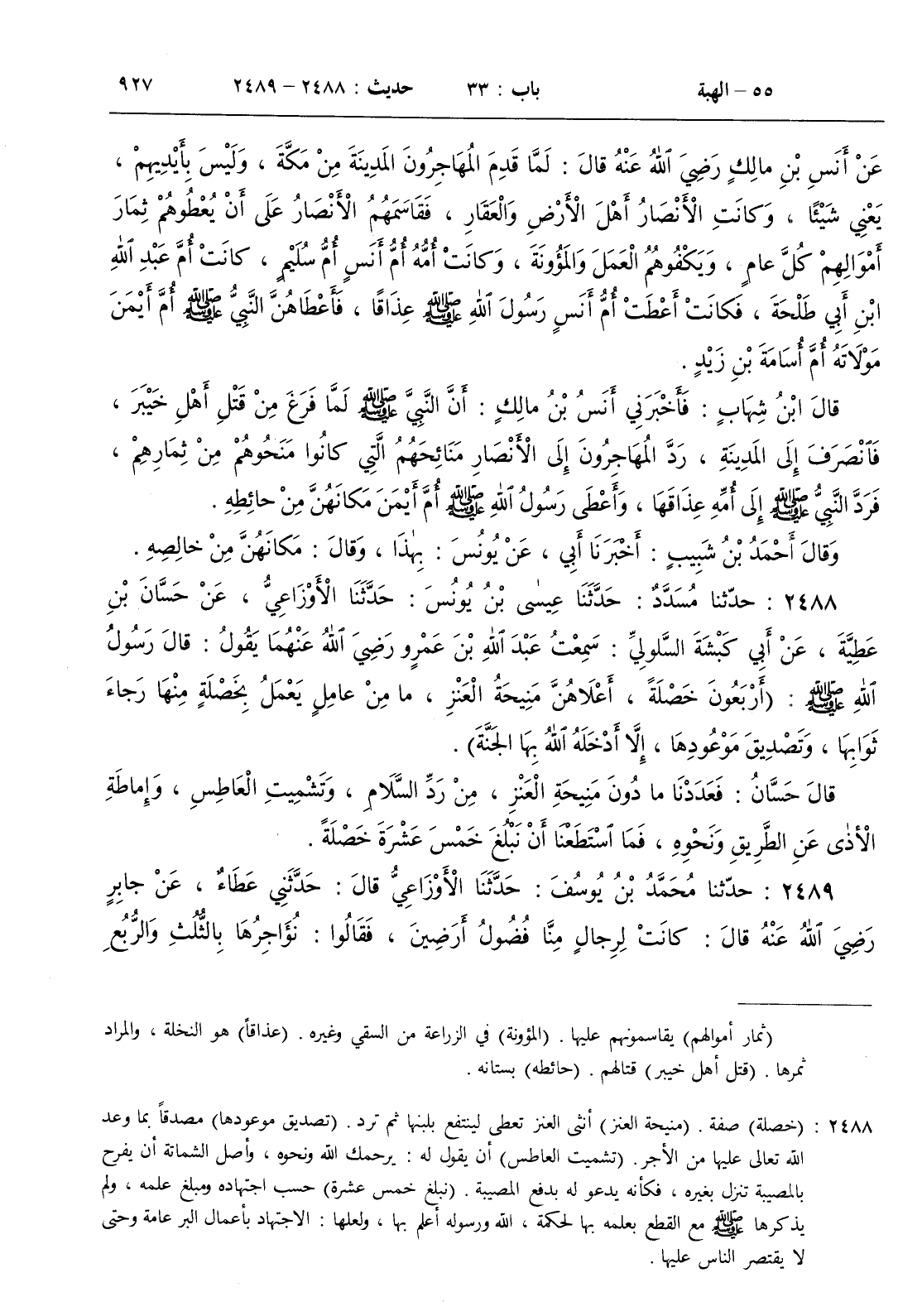 2488 - حدثنا مسدد حدثنا عيسى بن يونس حدثنا الأوزاعي عن حسان بن عطية عن أبي كبشة السلولي سمعت عبد الله بن عمرو رضي الله عنهما يقول
