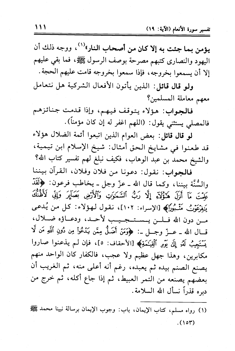 لو قال قائل: بعض العوام الذين اتبعوا أئمة الضلال هؤلاء قد طعنوا في مشايخ الحق أمثال: شيخ الإسلام ابن تيمية، والشيخ محمد بن عبد الوهاب، فكيف نبلغ لهم تفسير كتاب الله؟