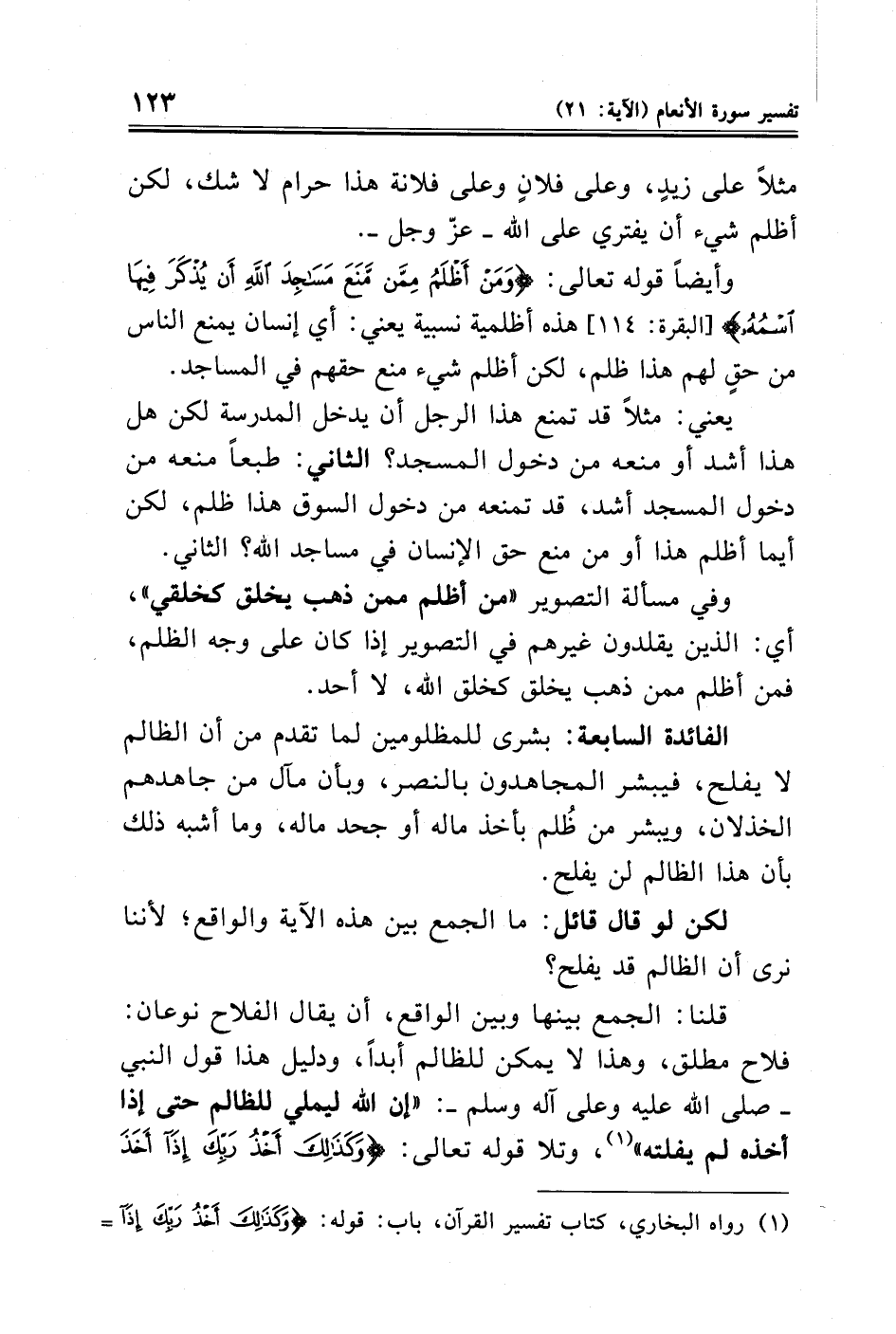 قلنا: الجمع بينها وبين الواقع، أن يقال الفلاح نوعان: فلاح مطلق، وهذا لا يمكن للظالم أبدًا، ودليل هذا قول النبي - صلى الله عليه وعلى آله وسلم -: "إن الله ليملي للظالم حتى إذا أخذه لم يفلته" (¬١)، وتلا قوله تعالى: {وَكَذَلِكَ أَخْذُ رَبِّكَ إِذَا أَخَذَ