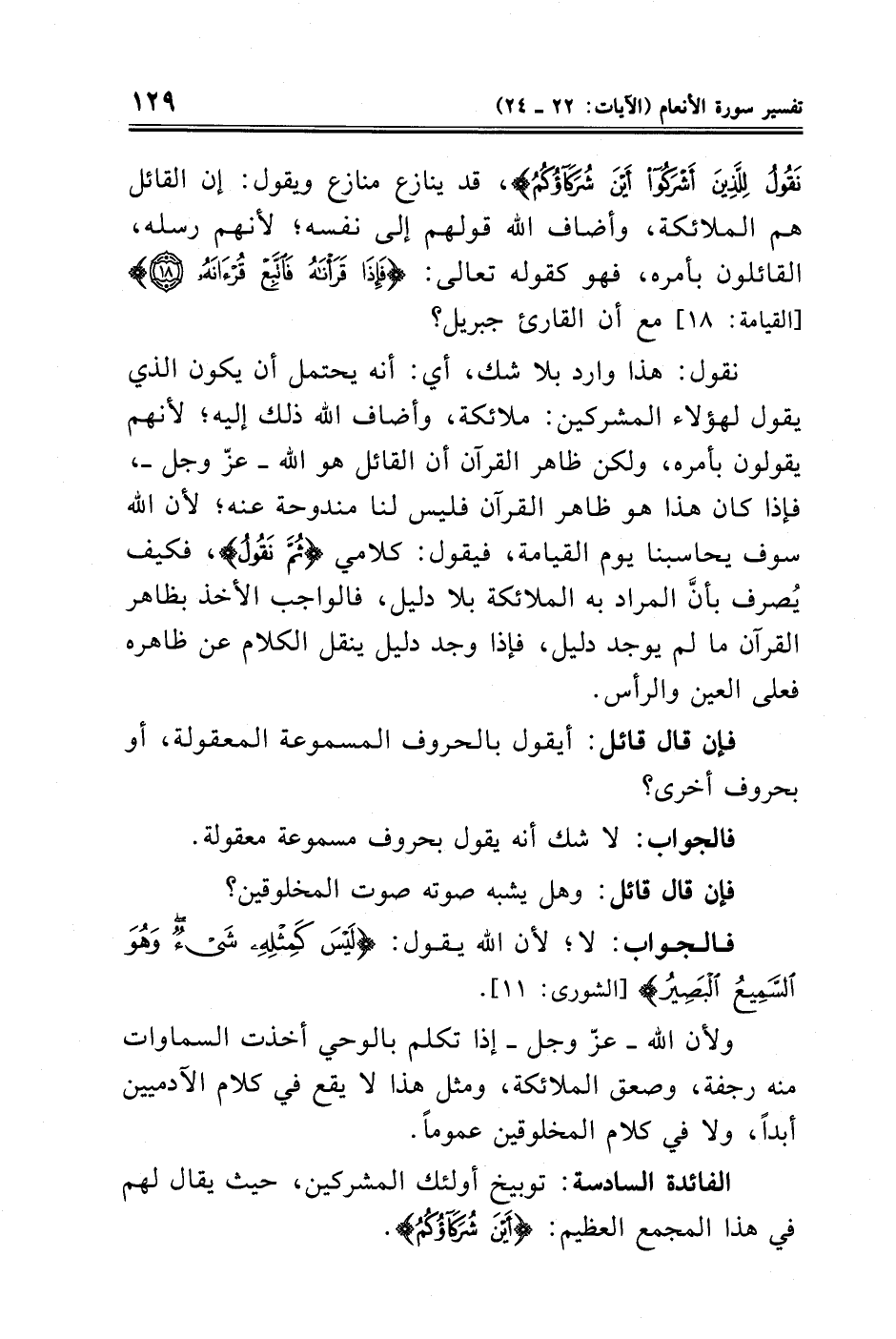 نَقُولُ لِلَّذِينَ أَشْرَكُوا أَيْنَ شُرَكَاؤُكُمُ}، قد ينازع منازع ولقول: إن القائل هم الملائكة، وأضاف الله قولهم إلى نفسه؛ لأنهم رسله، القائلون بأمره، فهو كقوله تعالى: {فَإِذَا قَرَأْنَاهُ فَاتَّبِعْ قُرْآنَهُ (١٨)} [القيامة: ١٨] مع أن القارئ جبريل؟