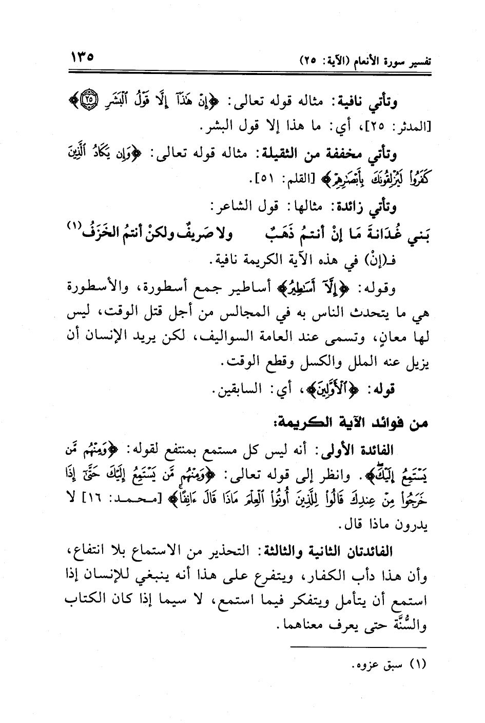 وتأتي نافية: مثاله قوله تعالى: {إِنْ هَذَا إِلَّا قَوْلُ الْبَشَرِ (٢٥)} [المدثر: ٢٥]، أي: ما هذا إلا قول البشر.