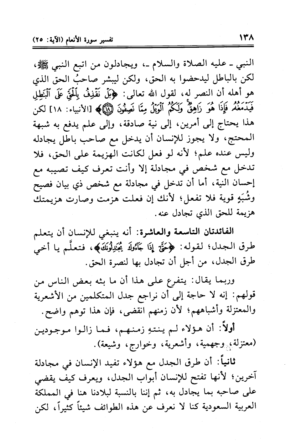 النبي - عليه الصلاة والسلام -، ويجادلون من اتبع النبي - صلى الله عليه وسلم -، لكن بالباطل ليدحضوا به الحق، ولكن ليبشر صاحبُ الحق الذي هو أهله أن النصر له، لقول الله تعالى: {بَلْ نَقْذِفُ بِالْحَقِّ عَلَى الْبَاطِلِ فَيَدْمَغُهُ فَإِذَا هُوَ زَاهِقٌ وَلَكُمُ الْوَيْلُ مِمَّا تَصِفُونَ (١٨)} [الأنبياء: ١٨] لكن هذا يحتاج إلى أمرين، إلى نية صادقة، وإلى علم يدفع به شبهة المحتج، ولا يجوز للإنسان أن يدخل مع صاحب باطل يجادله وليس عنده علم؛ لأنه لو فعل لكانت الهزيمة على الحق، فلا تدخل مع شخص في مجادلة إلا وأنت تعرف كيف تصيبه مع إحسان النية، أما أن تدخل في مجادلة مع شخص ذي بيان فصيح وشُبَهٍ قوية فلا تفعل؛ لأنك إن فعلت هزمت وصارت هزيمتك هزيمة للحق الذي تجادل عنه.