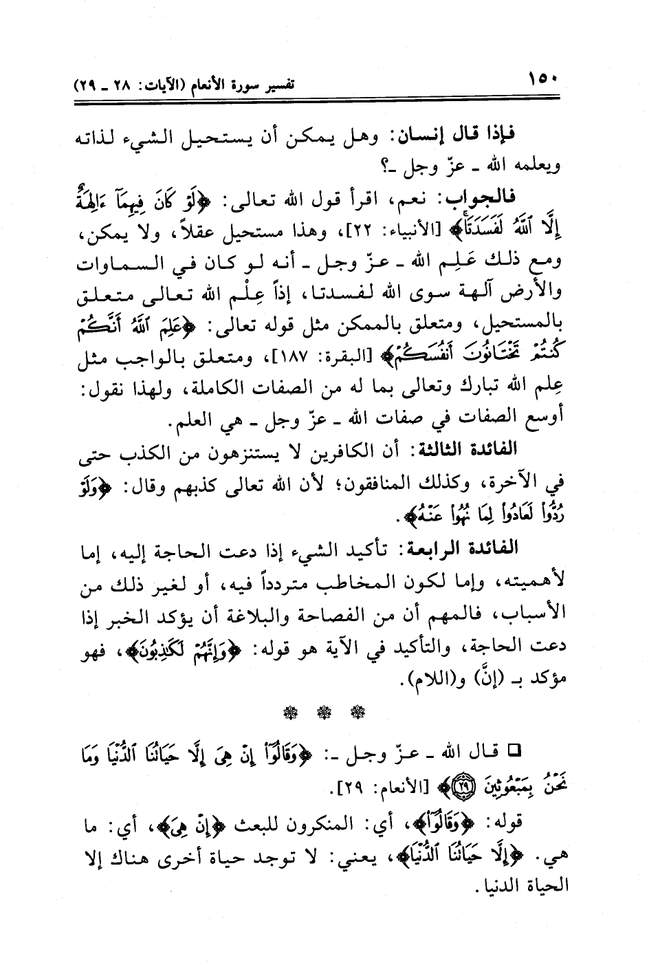 الفائدة الثالثة: أن الكافرين لا يستنزهون من الكذب حتى في الآخرة، وكذلك المنافقون؛ لأن الله تعالى كذبهم وقال: {وَلَوْ رُدُّوا لَعَادُوا لِمَا نُهُوا عَنْهُ}.