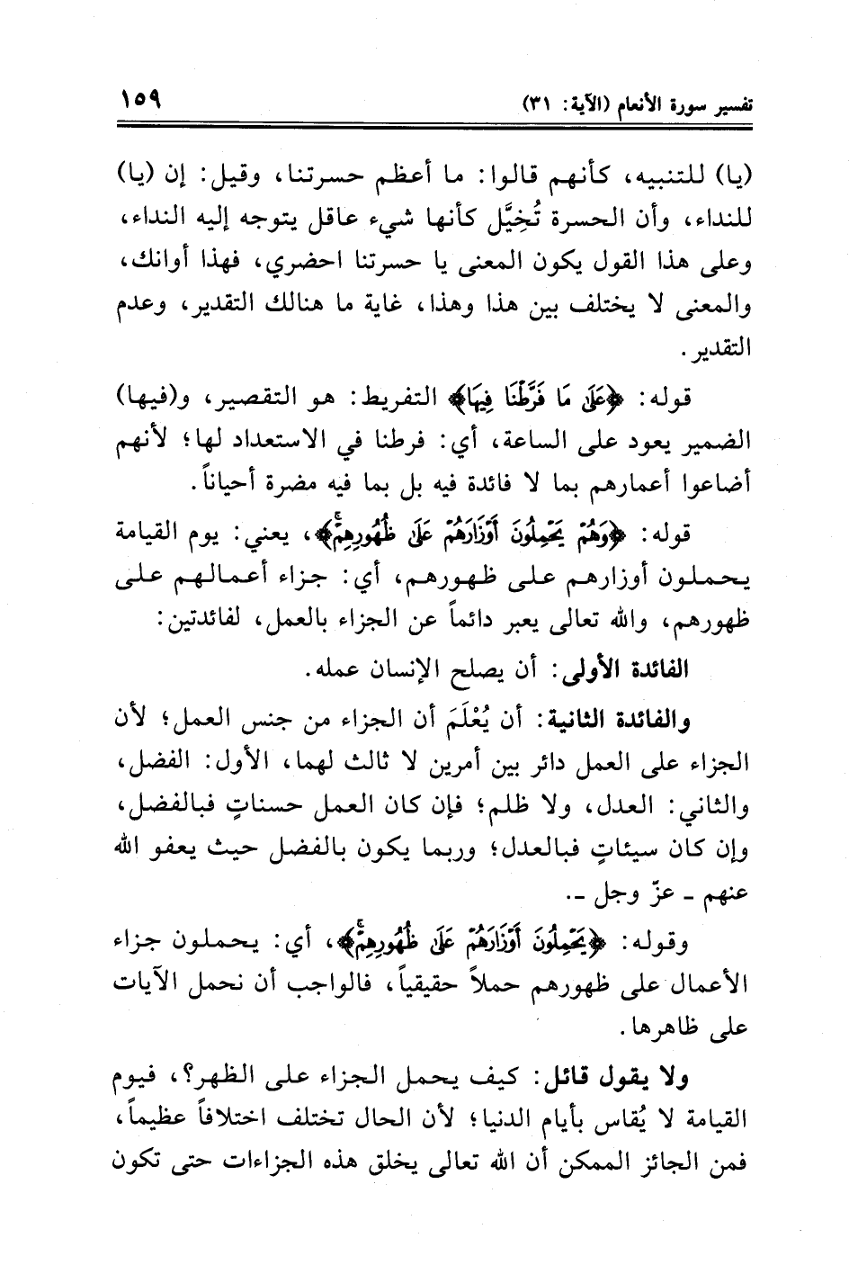ولا يقول قائل: كيف يحمل الجزاء على الظهر؟، فيوم القيامة لا يُقاس بأيام الدنيا؛ لأن الحال تختلف اختلافًا عظيمًا، فمن الجائز الممكن أن الله تعالى يخلق هذه الجزاءات حتى تكون