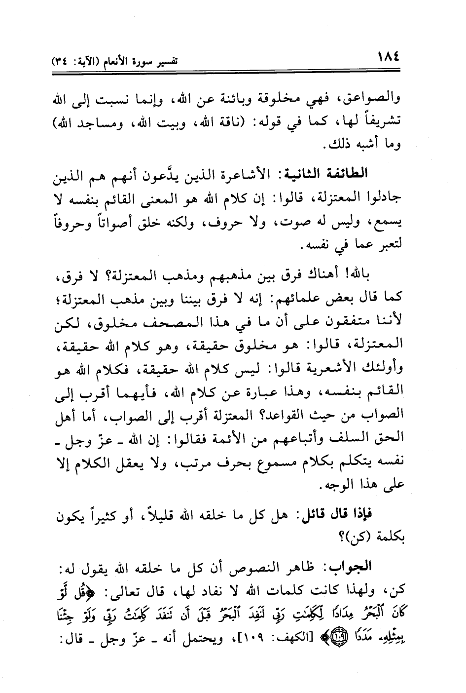 الطائفة الثانية: الأشاعرة الذين يدَّعون أنهم هم الذين جادلوا المعتزلة، قالوا: إن كلام الله هو المعنى القائم بنفسه لا يسمع، وليس له صوت، ولا حروف، ولكنه خلق أصواتًا وحروفًا لتعبر عما في نفسه.