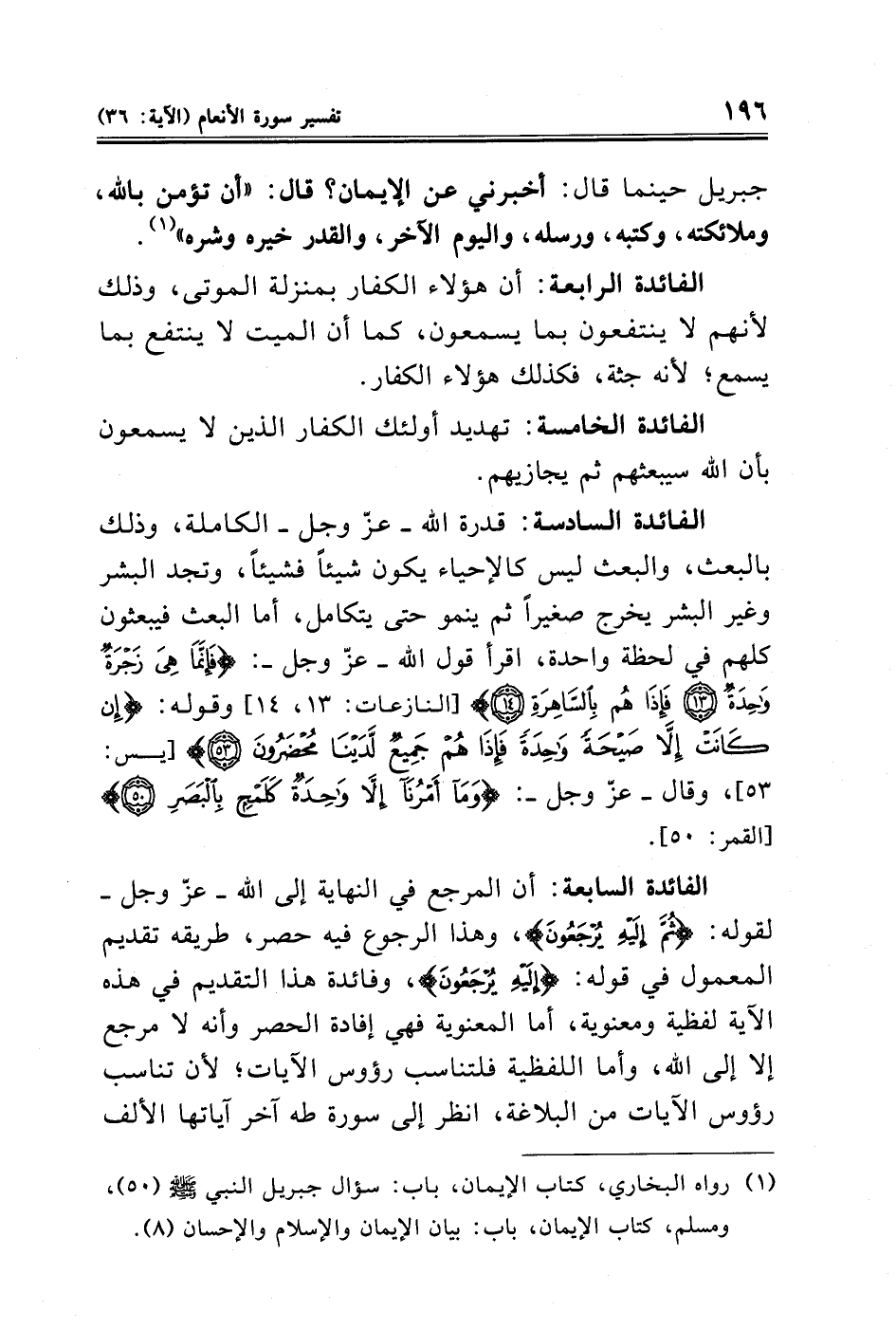 (¬١) رواه البخاري، كتاب الإيمان، باب: سؤال جبريل النبي - صلى الله عليه وسلم - (٥٠)، ومسلم، كتاب الإيمان، باب: بيان الإيمان والإسلام والإحسان (٨).