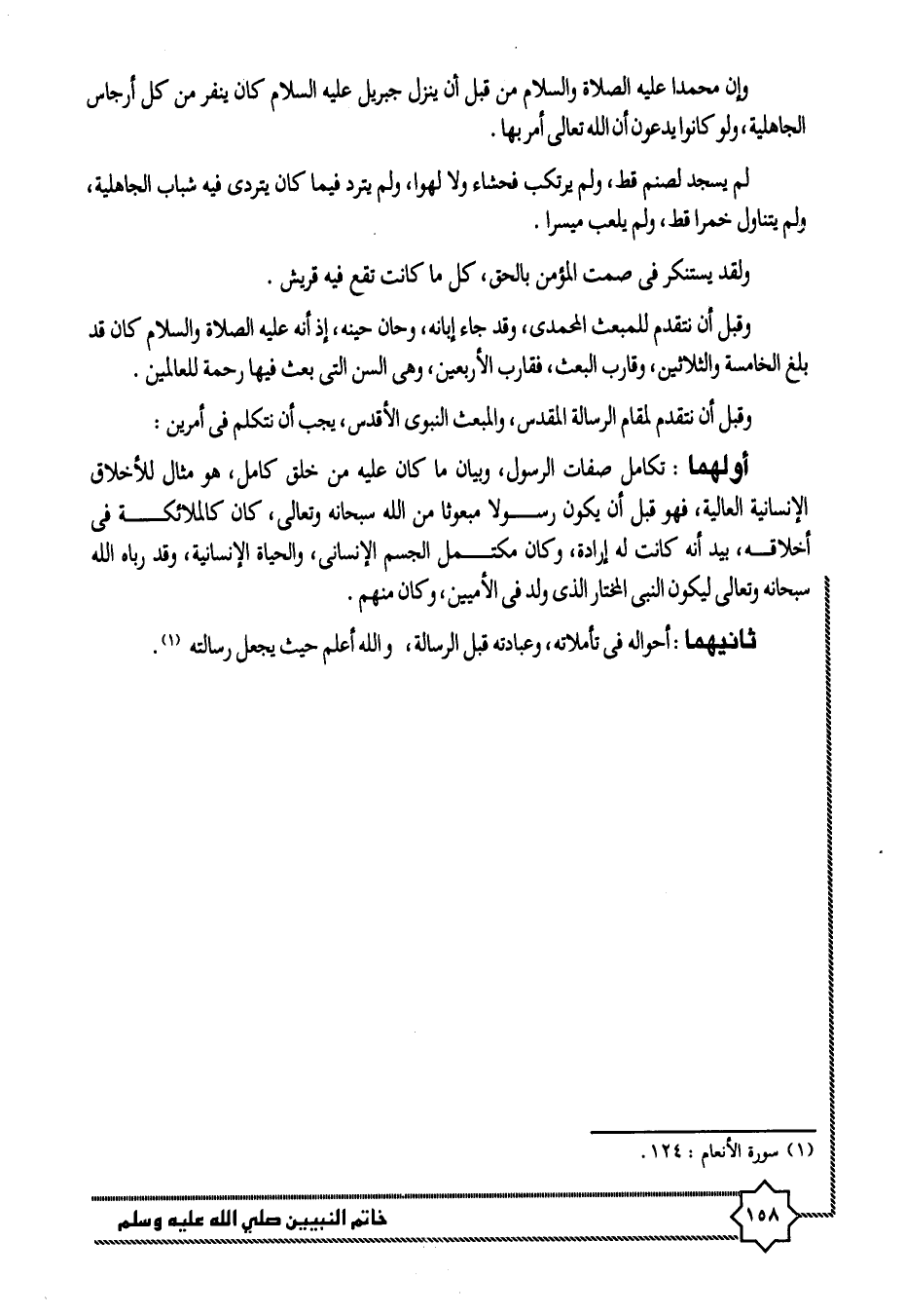 وقبل أن نتقدم للمبعث المحمدى، وقد جاء إبانه، وحان حينه، إذ أنه عليه الصلاة والسلام كان قد بلغ الخامسة والثلاثين، وقارب البعث، فقارب الأربعين، وهى السن التى بعث فيها رحمة للعالمين.