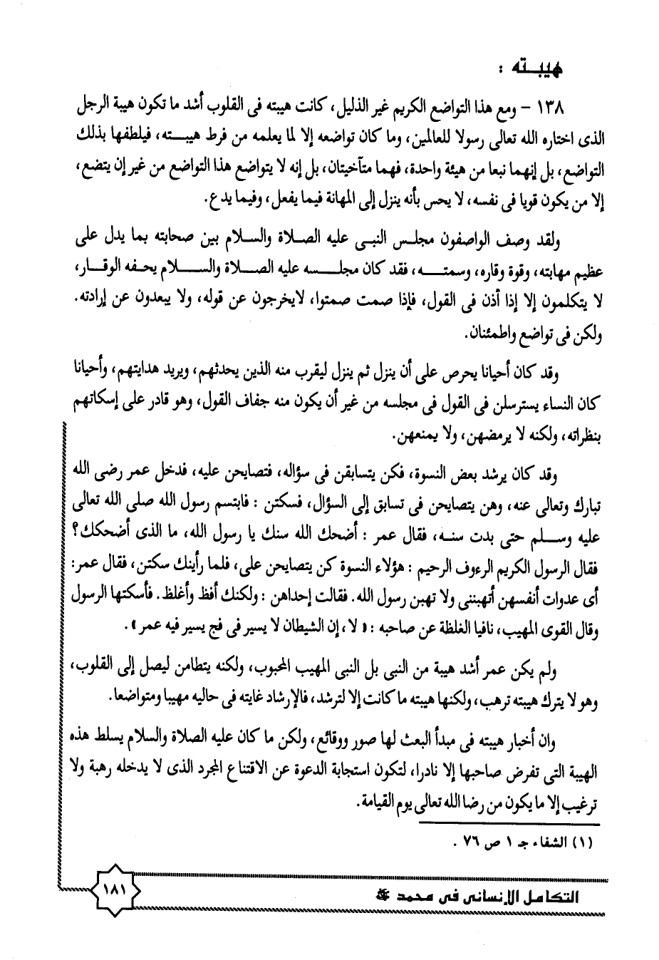 (1) الشفاء ج 1 ص 76.