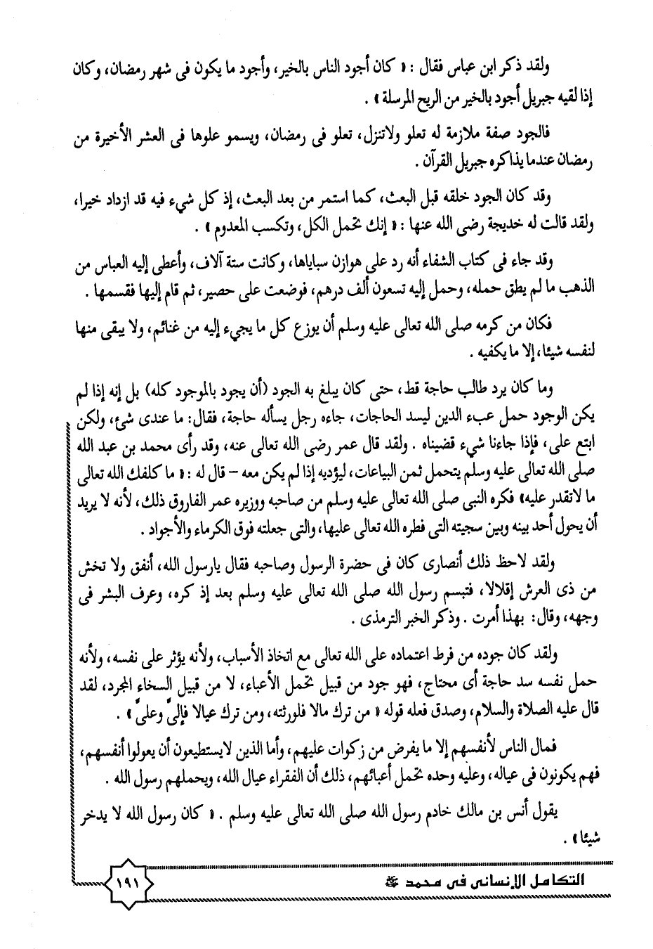 ولقد ذكر ابن عباس فقال: «كان أجود الناس بالخير، وأجود ما يكون فى شهر رمضان، وكان إذا لقيه جبريل أجود بالخير من الريح المرسلة» .