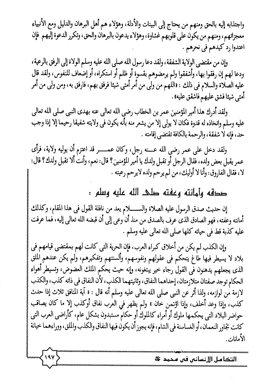 ولقد أدرك هذا أمير المؤمنين عمر بن الخطاب رضى الله تعالى عنه بهدى النبى صلى الله تعالى عليه وسلم واتخاذه له قدوة فكان لا يولى إلا من يشعر منه بأنه يكون فى ولايته شفيقا رحيما إلا إذا وجب حد، فإنه لا شفقة، والرحمة بالكافة تقتضى إقامته.