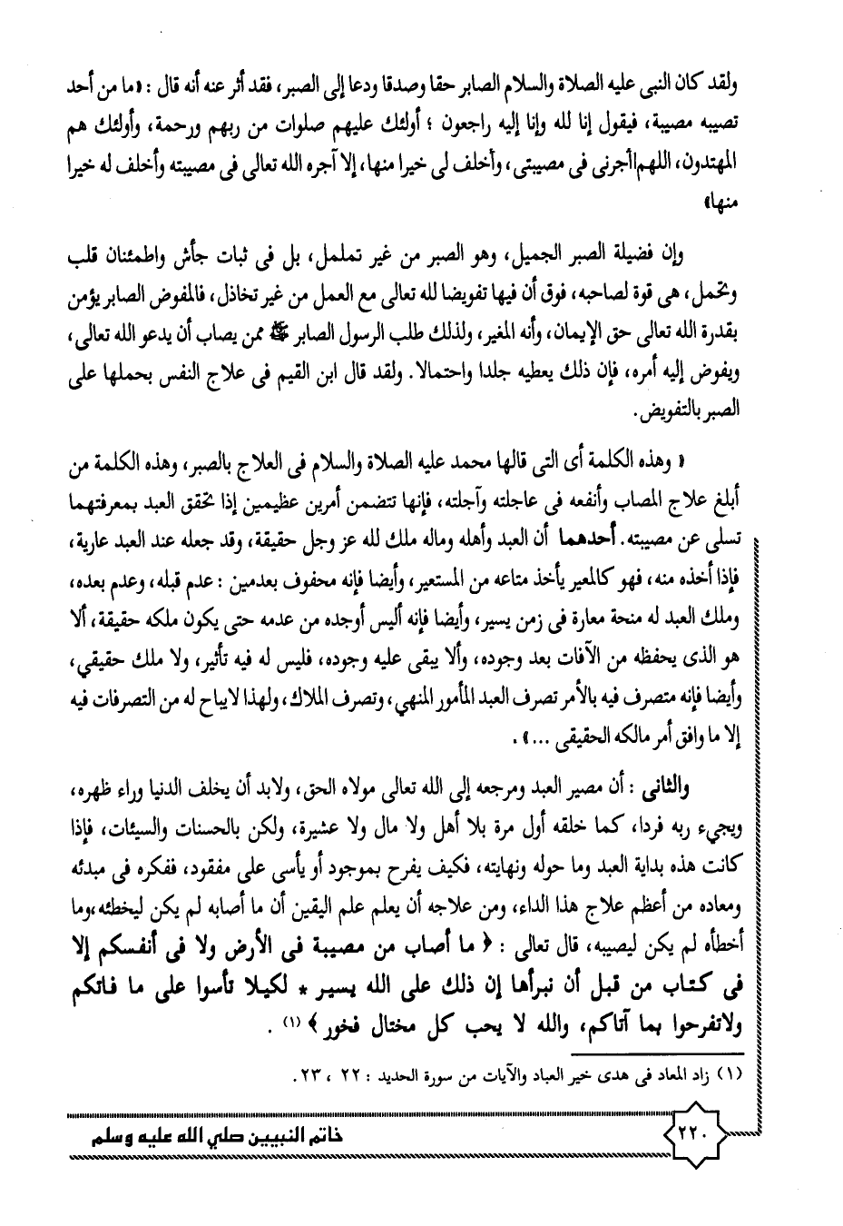 (1) زاد المعاد فى هدى خير العباد والايات من سورة الحديد: 22، 23.
