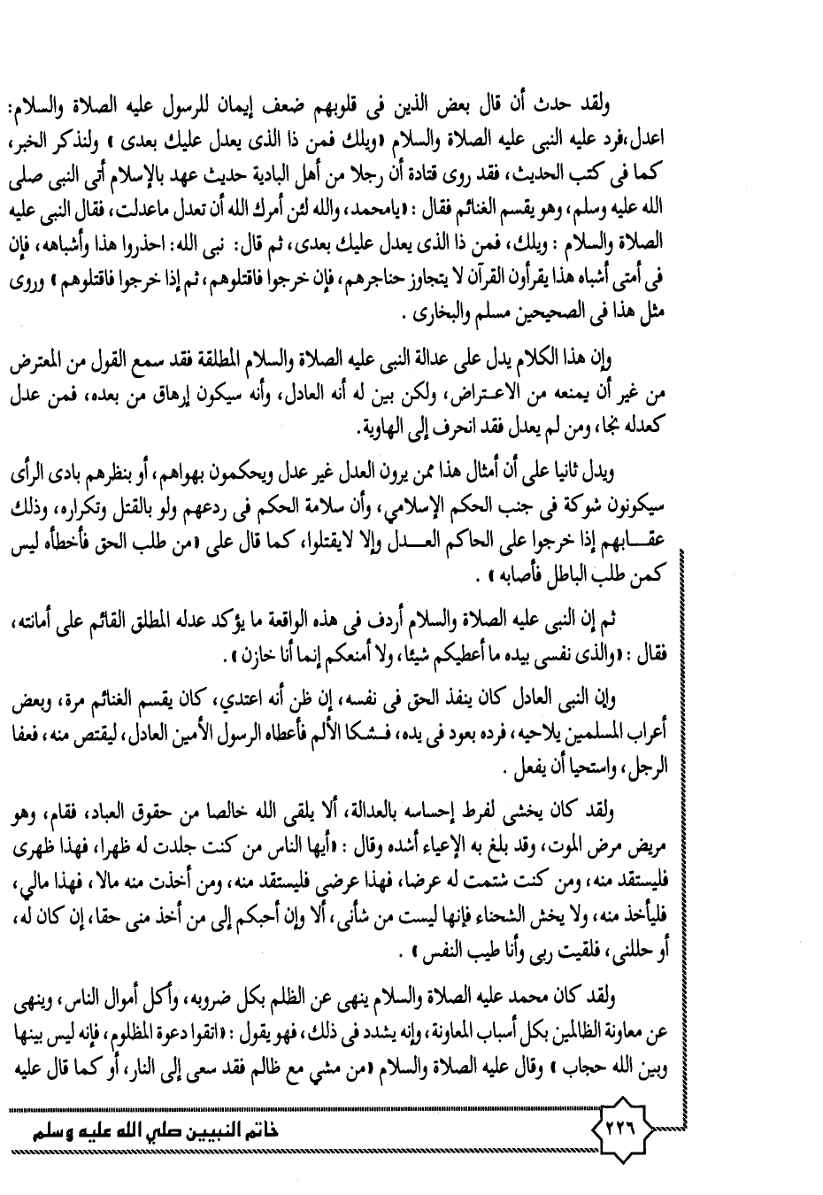 وإن هذا الكلام يدل على عدالة النبى عليه الصلاة والسلام المطلقة فقد سمع القول من المعترض من غير أن يمنعه من الاعتراض، ولكن بين له أنه العادل، وأنه سيكون إرهاق من بعده، فمن عدل كعدله نجا، ومن لم يعدل فقد انحرف إلى الهاوية.