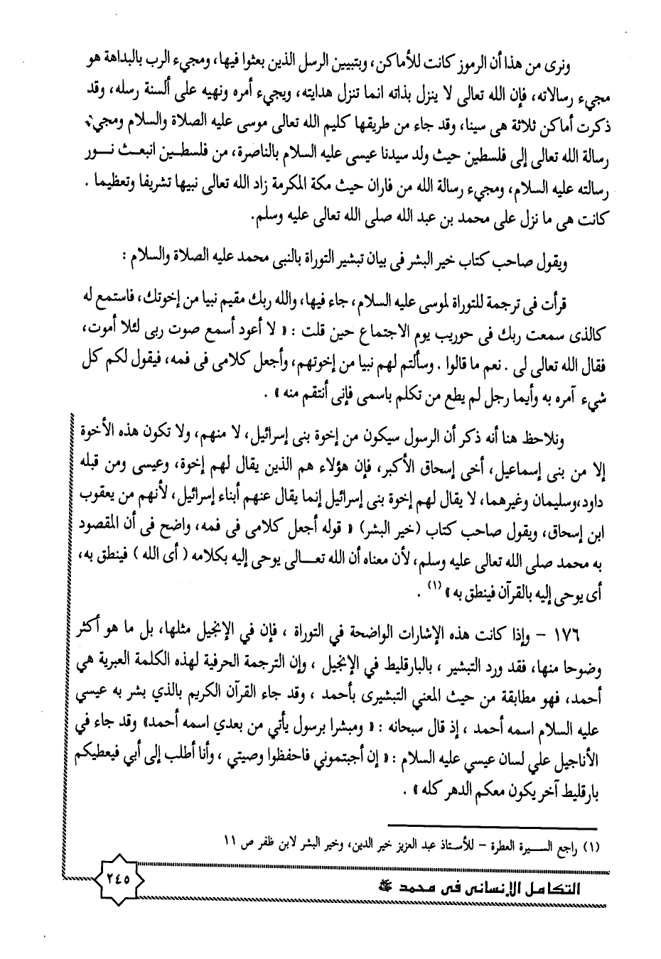 ويقول صاحب كتاب خير البشر فى بيان تبشير التوراة بالنبى محمد عليه الصلاة والسلام: