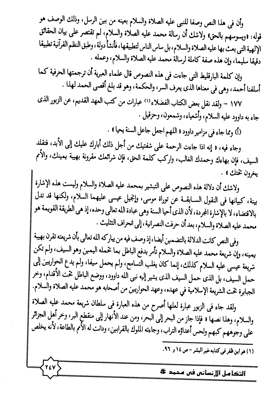 177- ولقد نقل بعض الكتاب الفضلاء «1» عبارات من كتب العهد القديم، عن الزبور الذى جاء به داود عليه السلام، وأشعياء، وشمعون، وحزقيل.