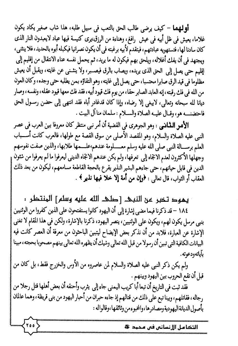الأمر الثانى: وهو الجوهرى فى القضية أن أمر نبى منتظر كان معروفا بين العرب فى عصر النبى عليه الصلاة والسلام، وهو المقصد الأصلى من سوق القصة مع طولها، فالعرب كانت أسباب العلم برسالة النبى صلى الله عليه وسلم معلومة عندهم، علمها طلابها، والذين صفت نفوسهم وجهلها الأكثرون لعدم الاتجاه إلى تعرفها، ولم يكن عندهم الاتجاه الدينى ليعرفوا ما لم يعرفوا من شئون الدين فى قابل حياتهم، حتى جاءهم البشير النذير يقرع بالحجة القاطعة مسامعهم، ليكون من بعد ذلك العقاب أو الثواب، قال تعالى: وَإِنْ مِنْ أُمَّةٍ إِلَّا خَلا فِيها نَذِيرٌ.