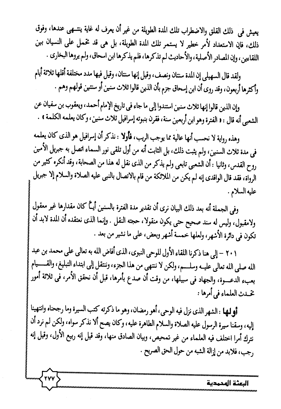 201- إلى هنا ذكرنا اللقاء الأول للوحى النبوى، الذى أفاض الله به تعالى على محمد بن عبد الله صلى الله تعالى عليه وسلم، ولكن لا ننتهى من هذا الجزء، وننتقل إلى ابتداء التبليغ، والقيام بعبء الدعوة، والجهاد فى سبيلها، من وقت أن صدع بأمرها، قبل أن نحقق الأمر، فى ثلاثة أمور تحدث العلماء فى أمرها: