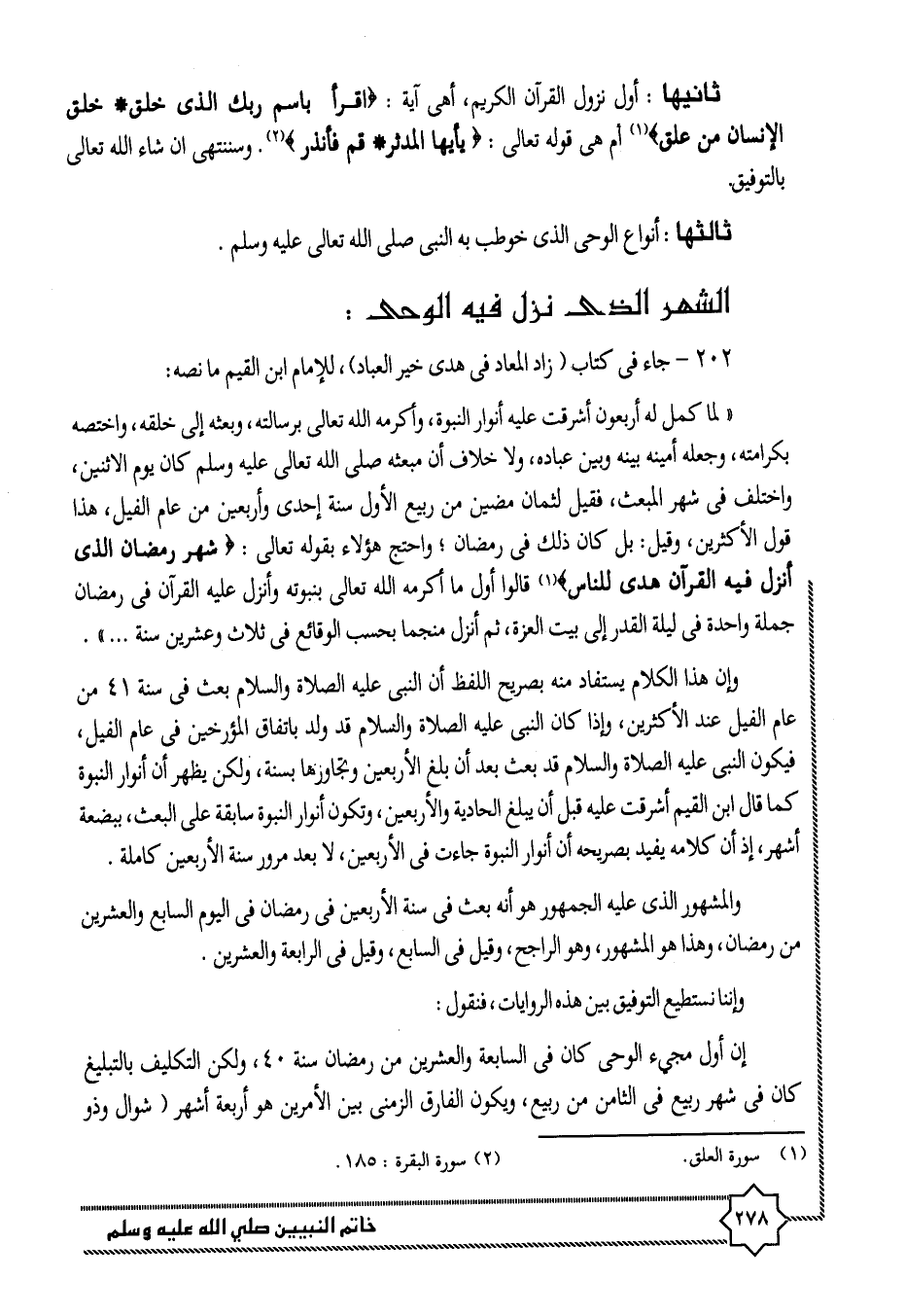 202- جاء فى كتاب (زاد المعاد فى هدى خير العباد) ، للإمام ابن القيم ما نصه: